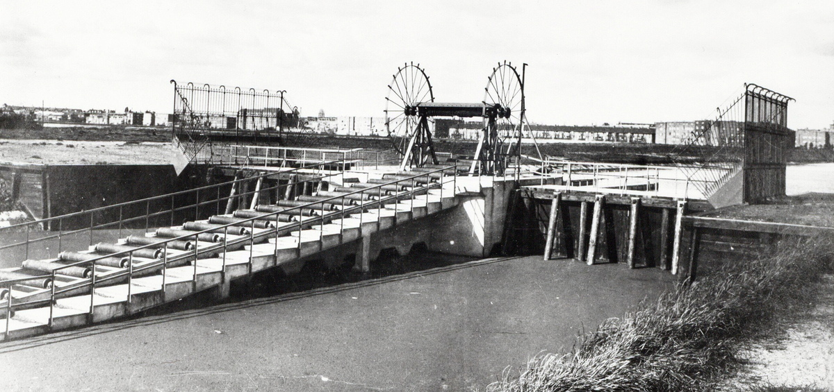 Nogmaals de overhaal van de Slotervaart een drietal jaren later. De rollen zijn verwijderd. De schuit op de overhaal lijkt me één of andere