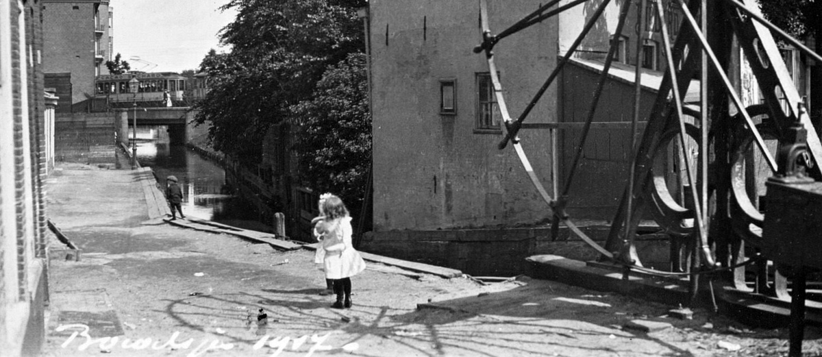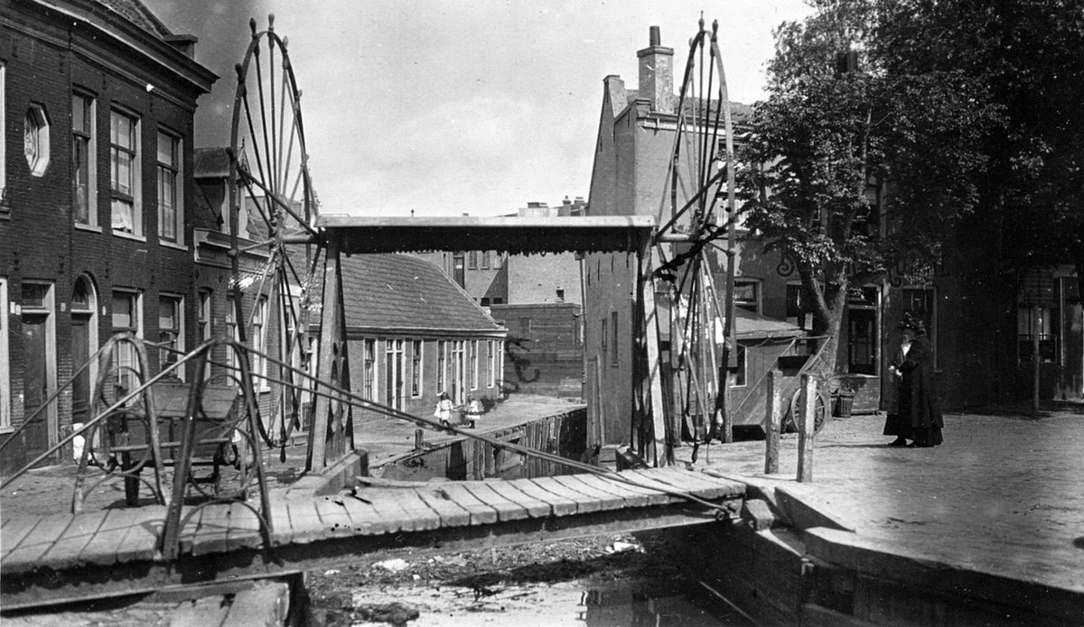 Op de achtergrond de Wiegbrug; de verbinding tussen De Clercqstraat en de Admiraal De Ruyterweg. Situatie rond 1910.