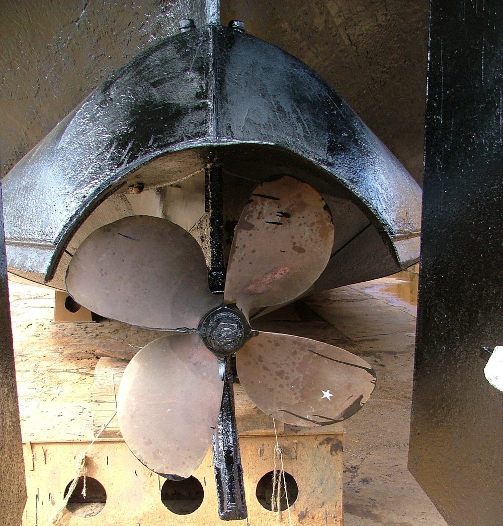 Rechtsachter ziet men de pomp waarmee het dok droog gepompt wordt en de