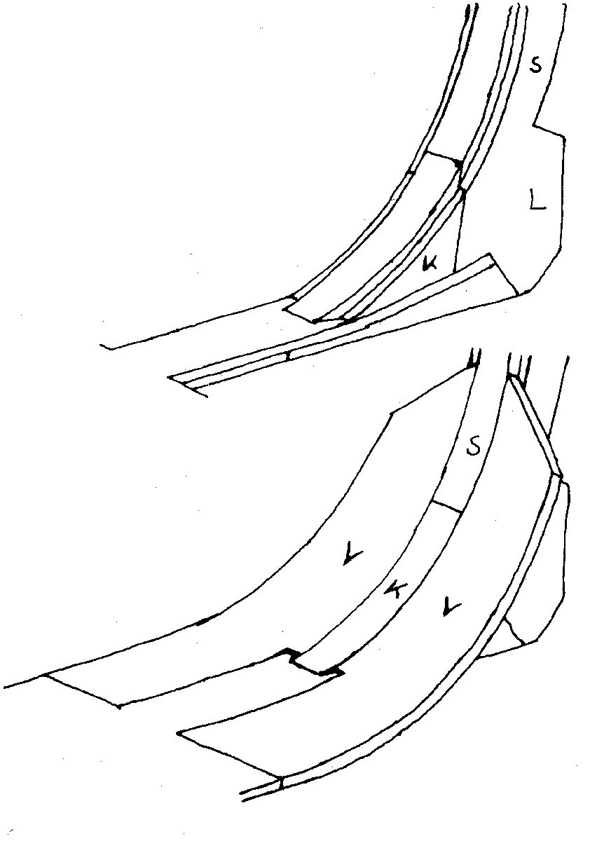 In de bovenste tekening is de steven geplaatst. In verband met de nerf