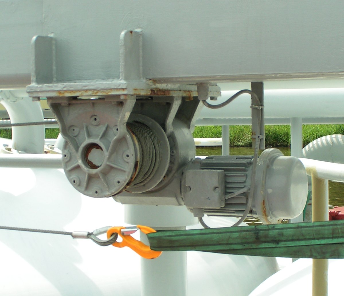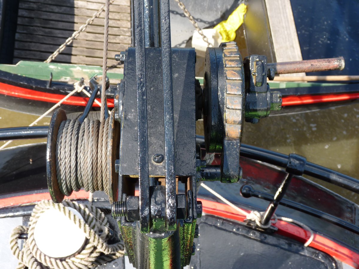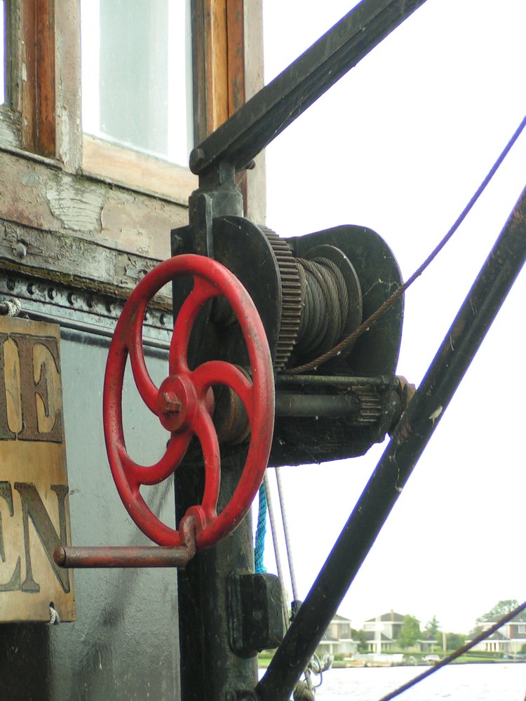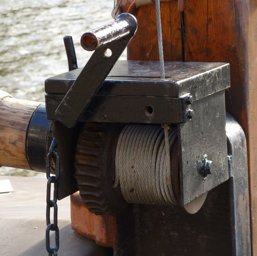 roeiboot te hijsen. Het is wel een wormwiellier maar remt zo zonder