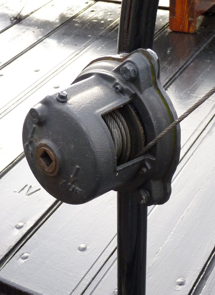 Een mooi ingekapseld liertje met een wiel, zonder slingergreep. De lier wordt gebruikt om de