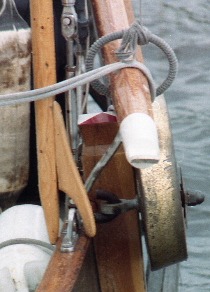 spuigat te haken, ook gebruikt om landvasten te geleiden en om in het spuigat van andere schepen vast te haken, iets