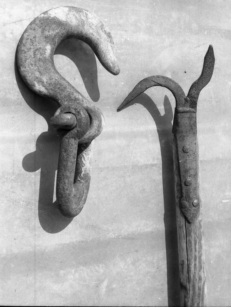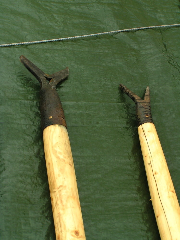 er meerdere pikhaken aan boord, korte; ongeveer een meter of twee en lange; van