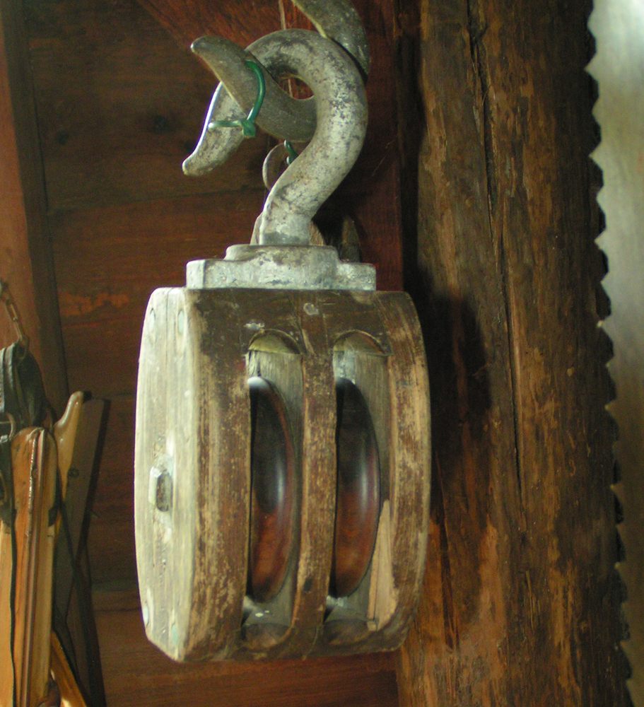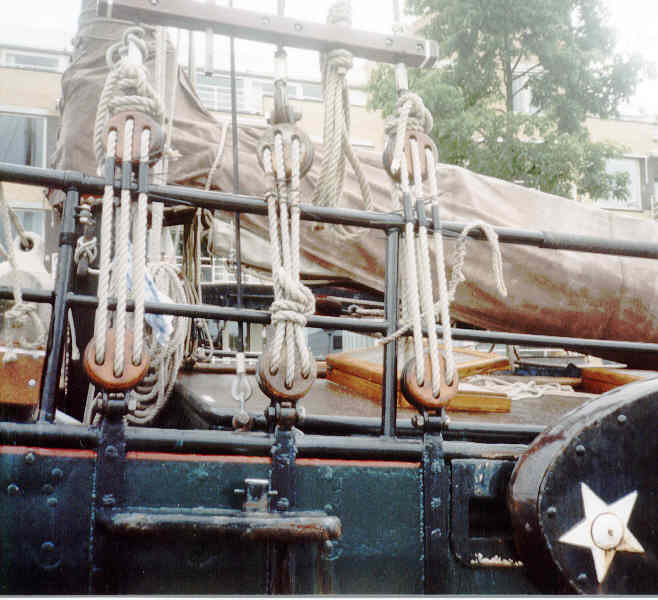 het geheel noemt men wel een bakstagblok, omdat het vaak voor de bakstag gebruikt werd.