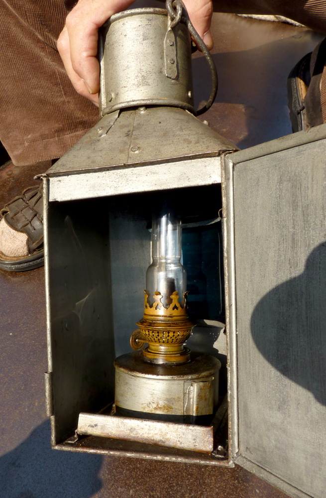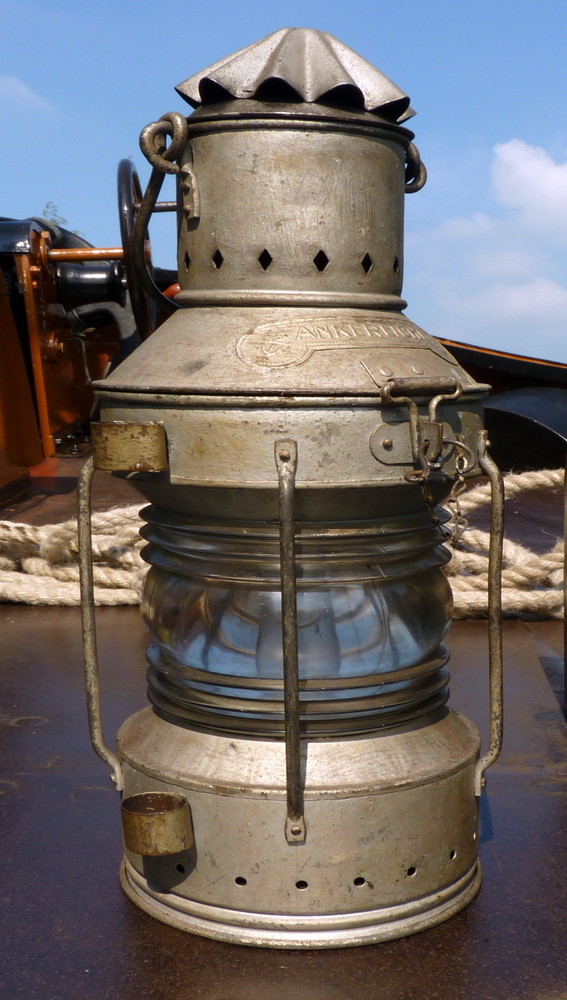 Een ankerlicht met petroleumlamp. Voor ankerlichten werden, vooral als men lag te