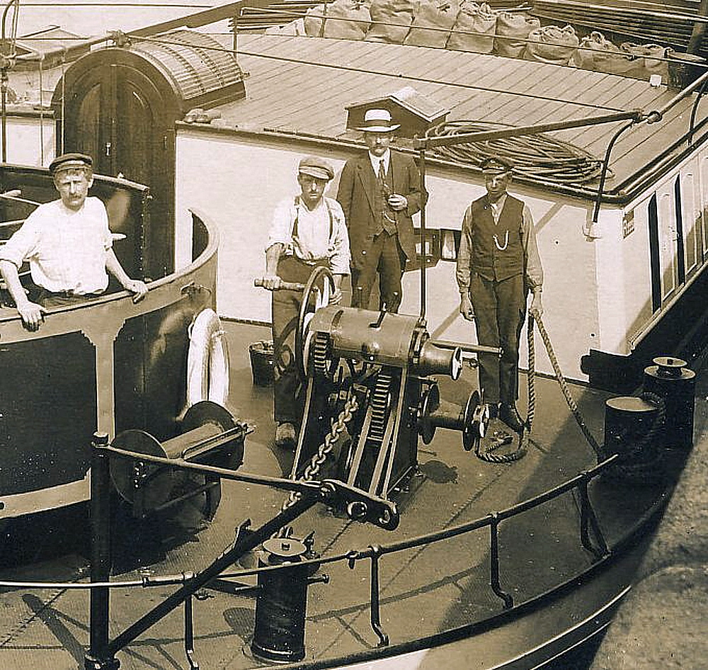 Een prachtig voorbeeld van stuurstand, bijgenaamd de 'erdaldoos' op een oud sleepschip met liggend stuurrad (haspel). Neem even de moeite de afbeelding op groot formaat te bekijken, want er valt heel wat te zien. Wat dacht U bijvoorbeeld van de draadhaspeltjes aan de stuurhutwand?