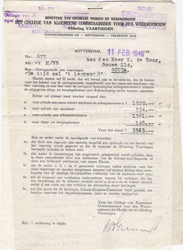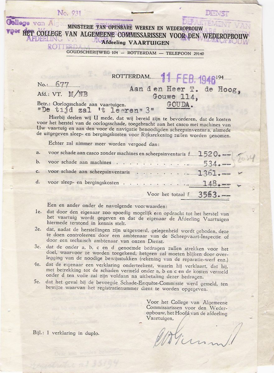 bovenstaande brief, moesten er nog herstelwerkzaamheden aan de motor/