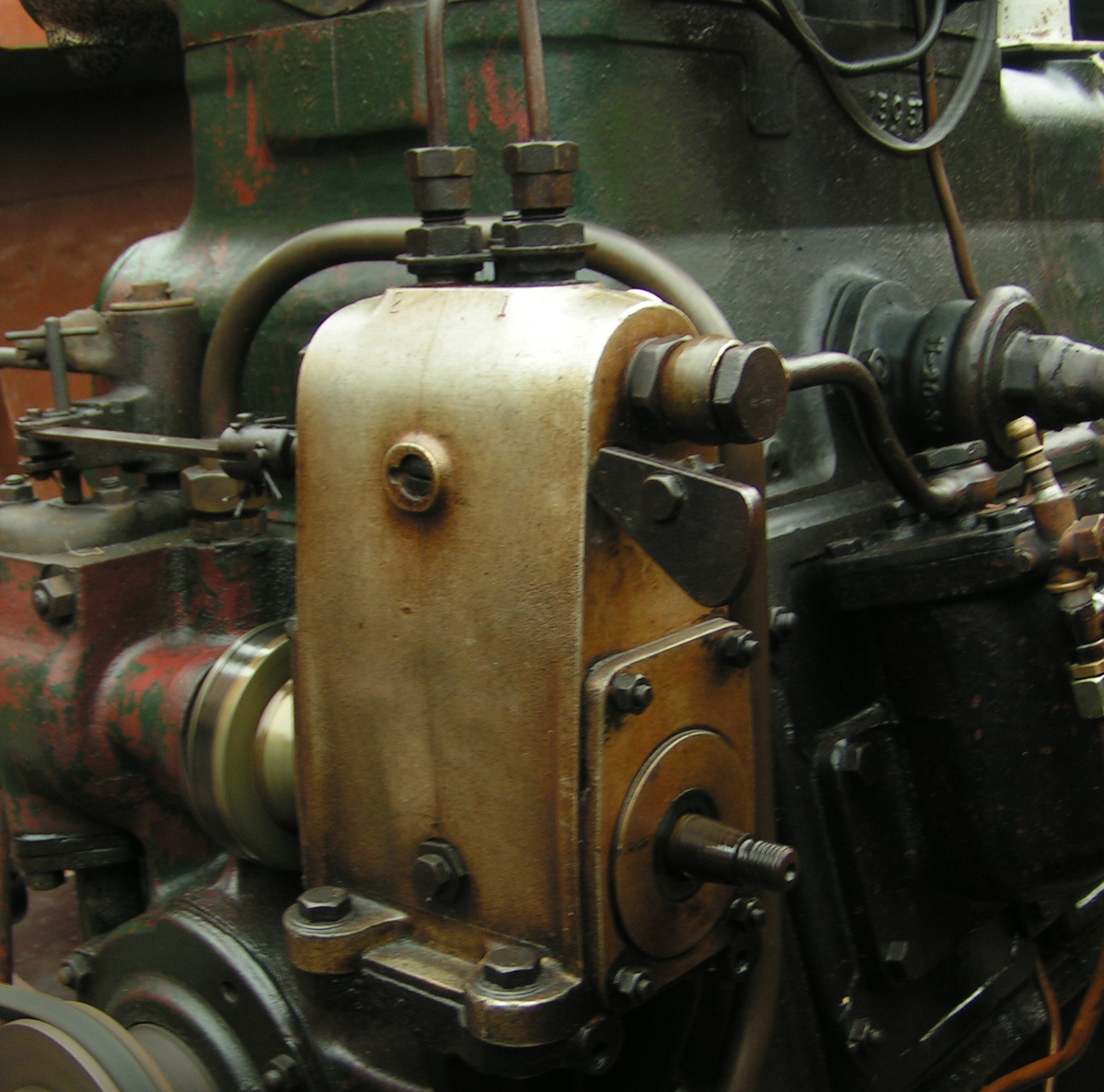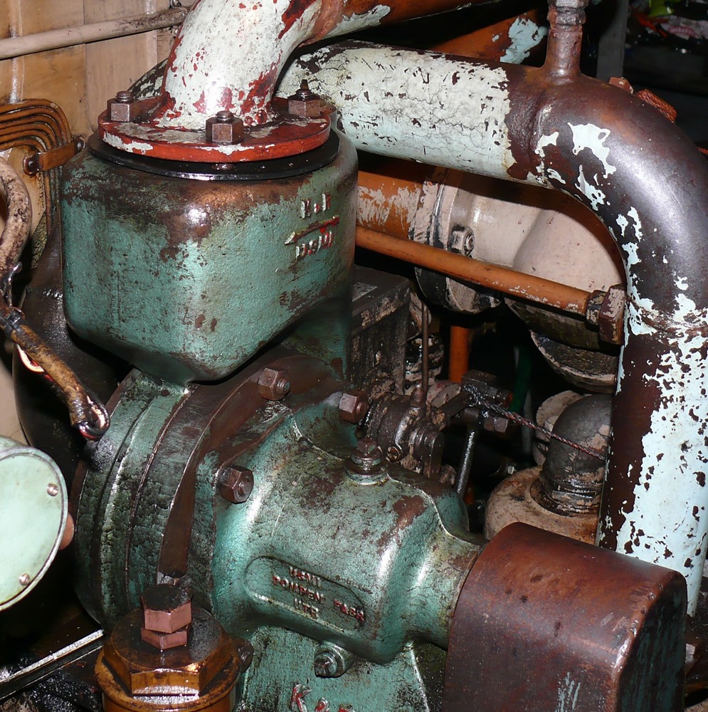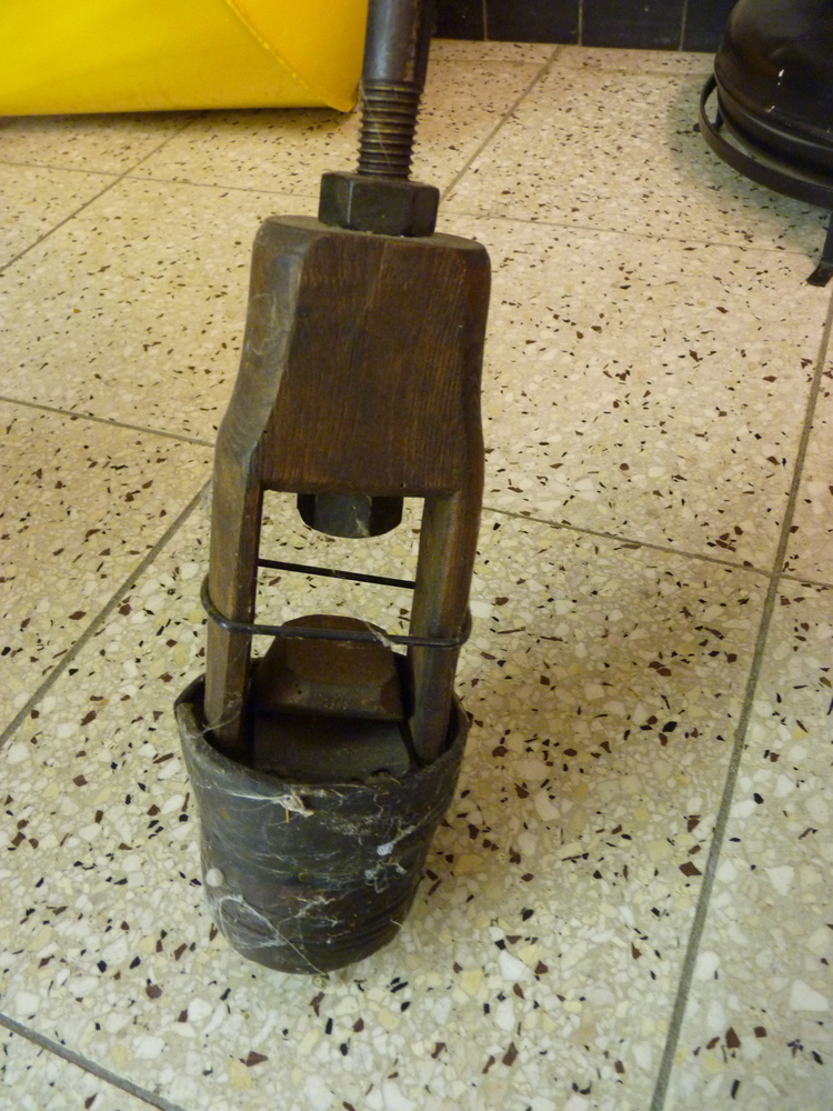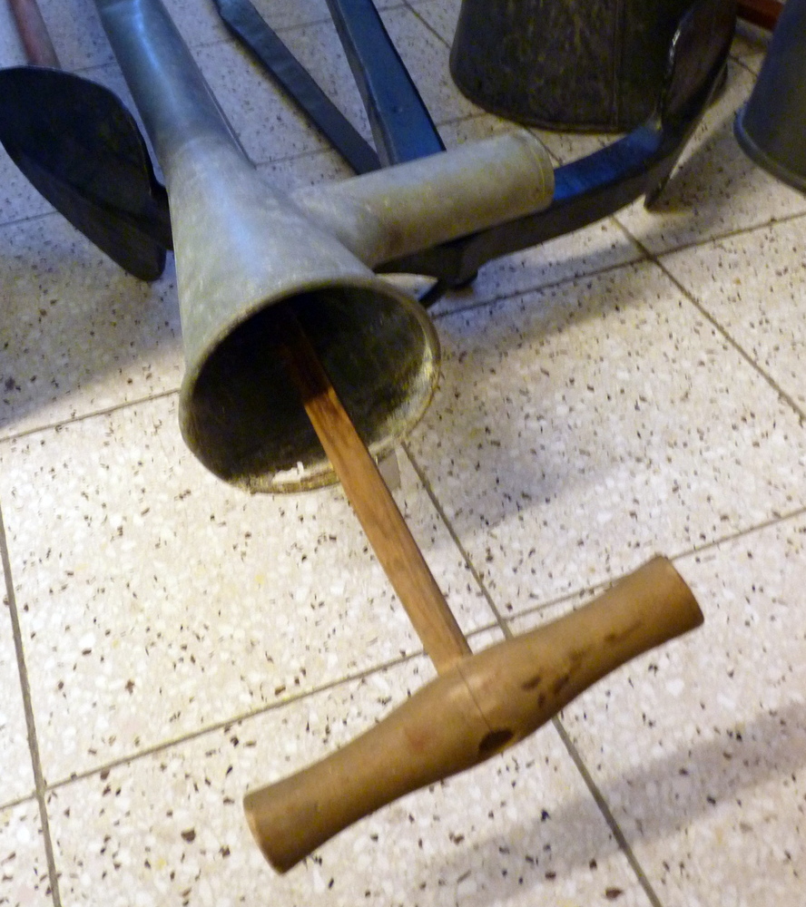 kattekop ingericht voor handbediening. De kleppen in dergelijke pompen bestonden vaak uit harde rubberen ballen. In dit geval is de, met veer bkrachtigde, bovenklep een, met metaal verzwaarde, rubberen schijf.