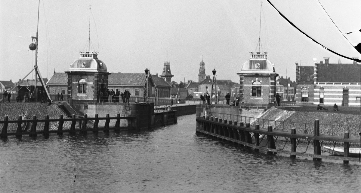 geleidewerk genoemd te worden. Bij deze sluis vallen de deuren, zoals te doen gebruiklijk, wel geheel binnen de deurkassen.