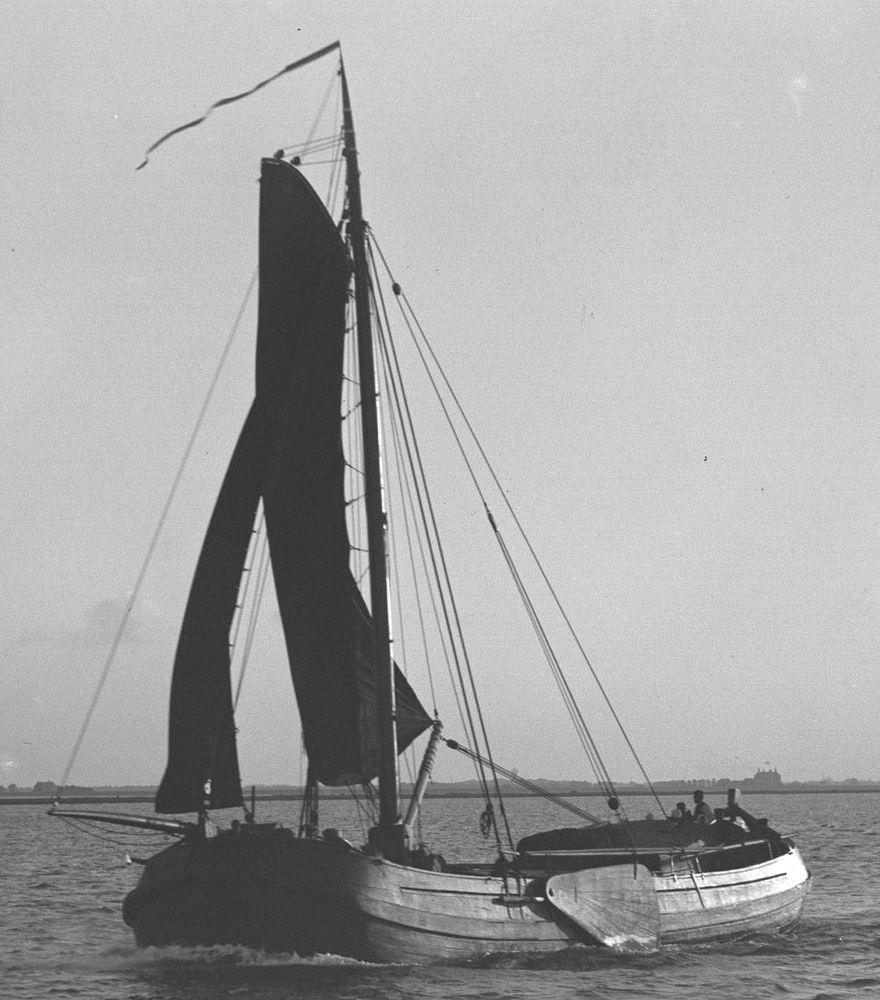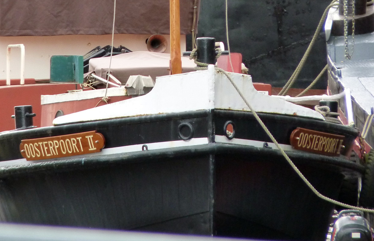 Fototitel: De koftjalk 'Ambulant' van H.Groen uit Groningen bouwjaar 1909 in de haven van de Zuidergasfabriek op de Korte Ouderkerkerdijk (Amsterdam).