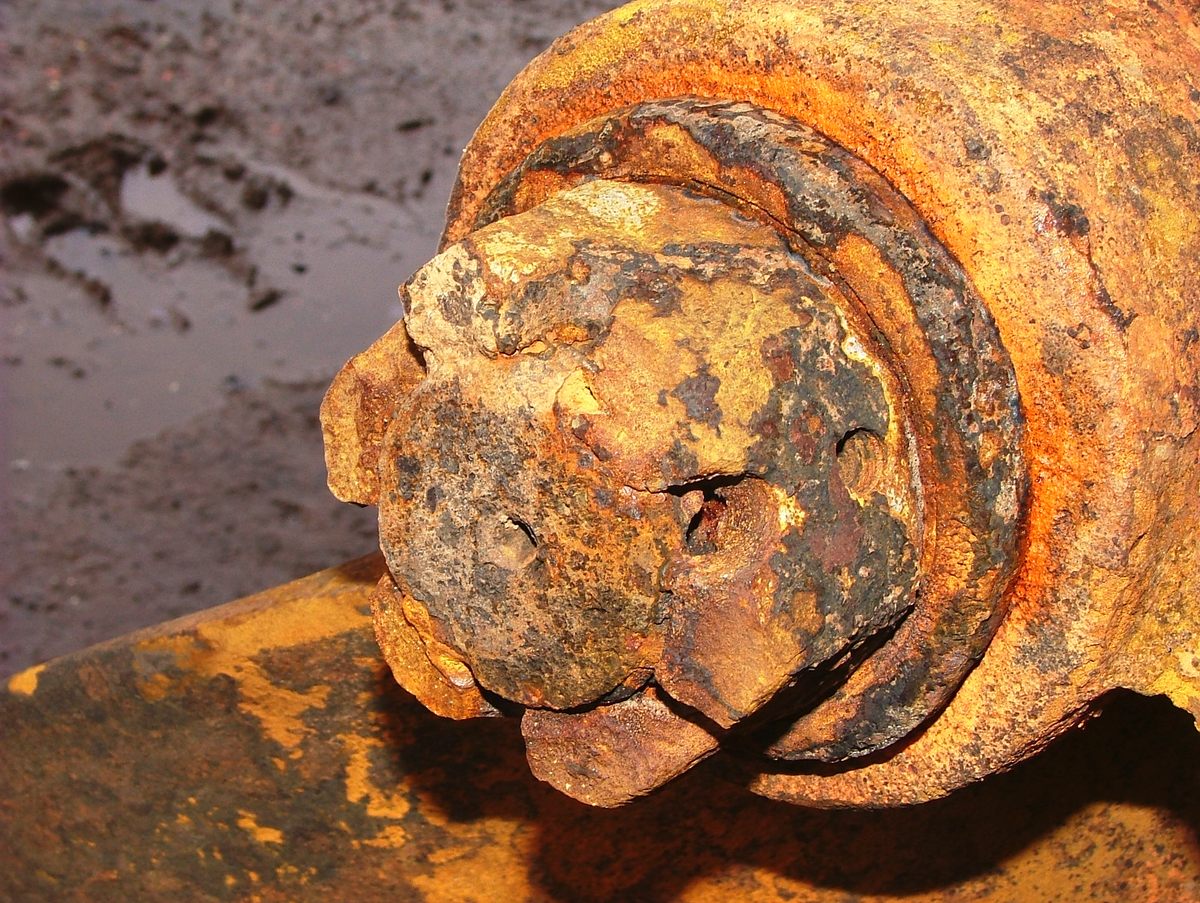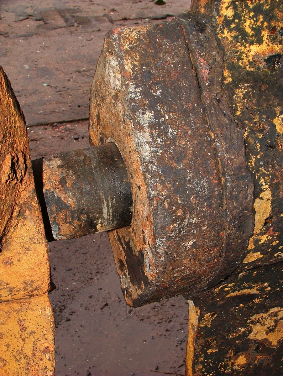 schroefasmoer. Vermoedelijk is de ring achter de moer eens vervangen door een dikker exemplaar, daardoor kon er geen splitpen meer door de 'kroon' en lijkt het of men voor de borgpen een gat dwars door de moer geboord heeft, of vergis ik mij daarin?.