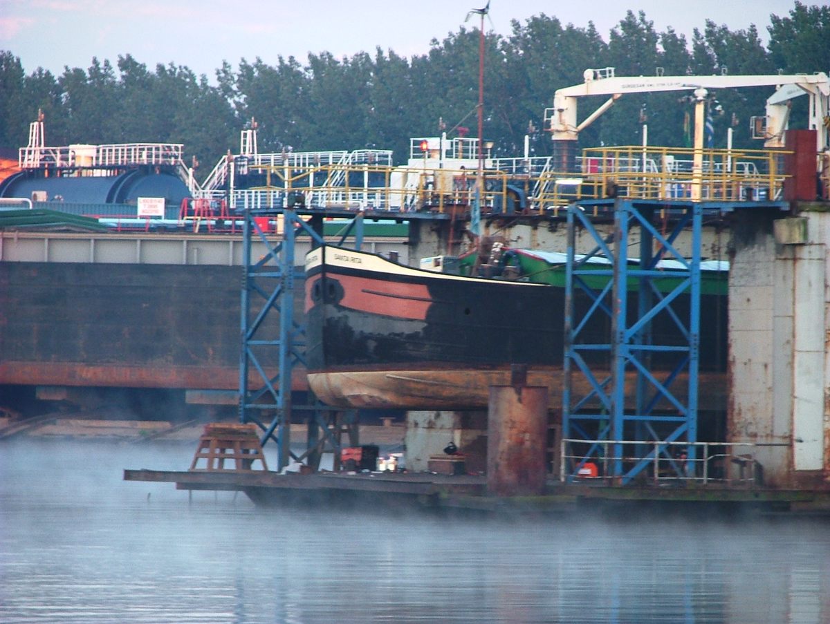 deed het schip dienst in Brugge als werkplaats voor de restauratie van een