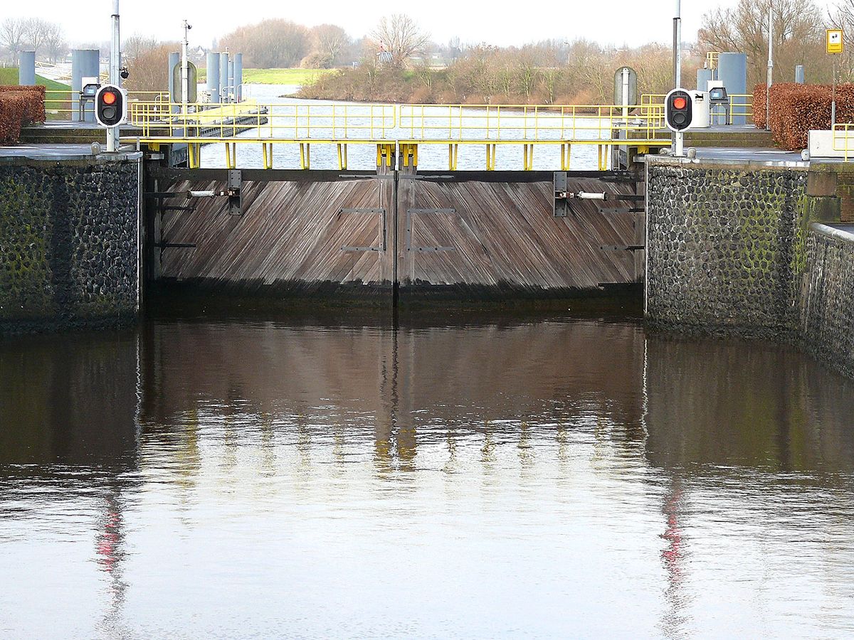kolkwanden van deze sluis zijn, in verband met het groot aantal pleziervaartuigen wat hier moet passeren, voor een groot deel met hout bekleed.
