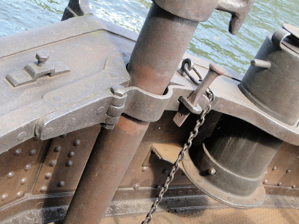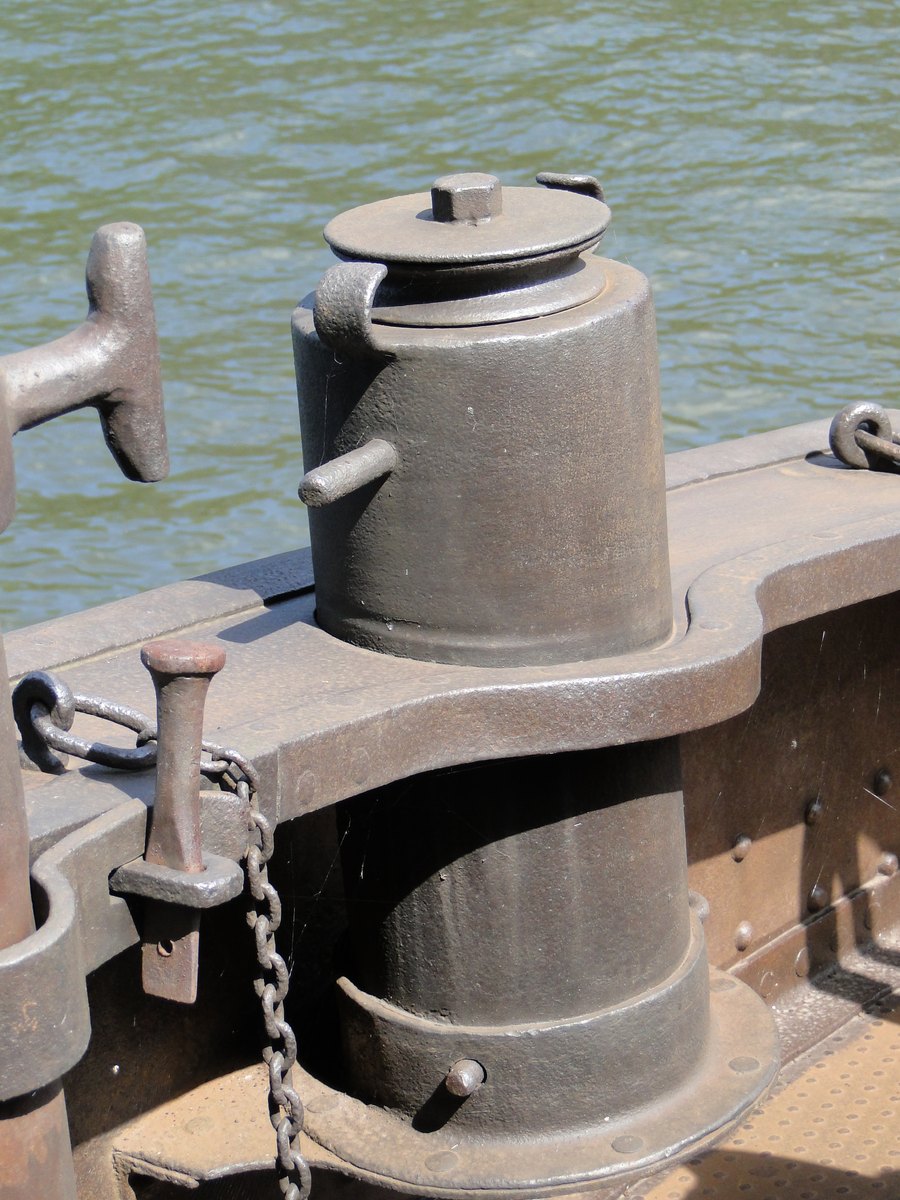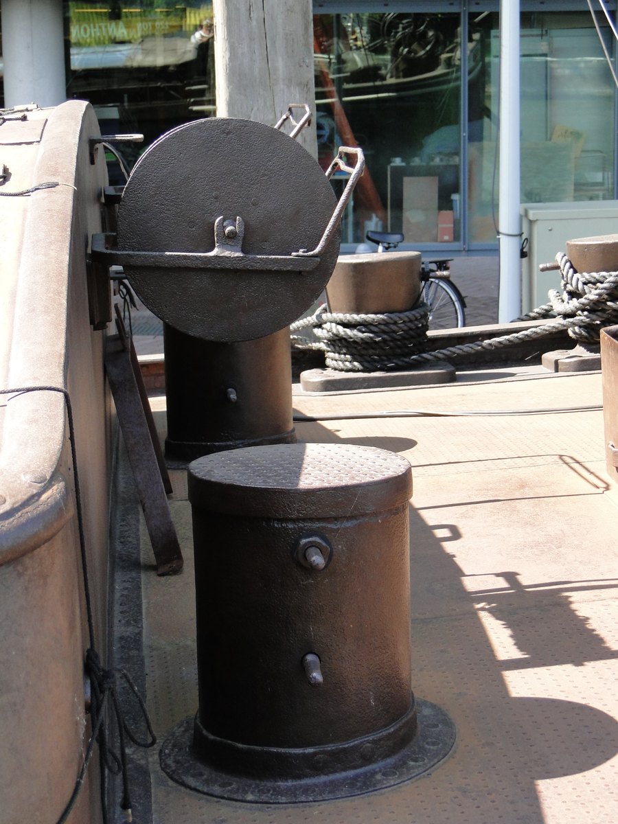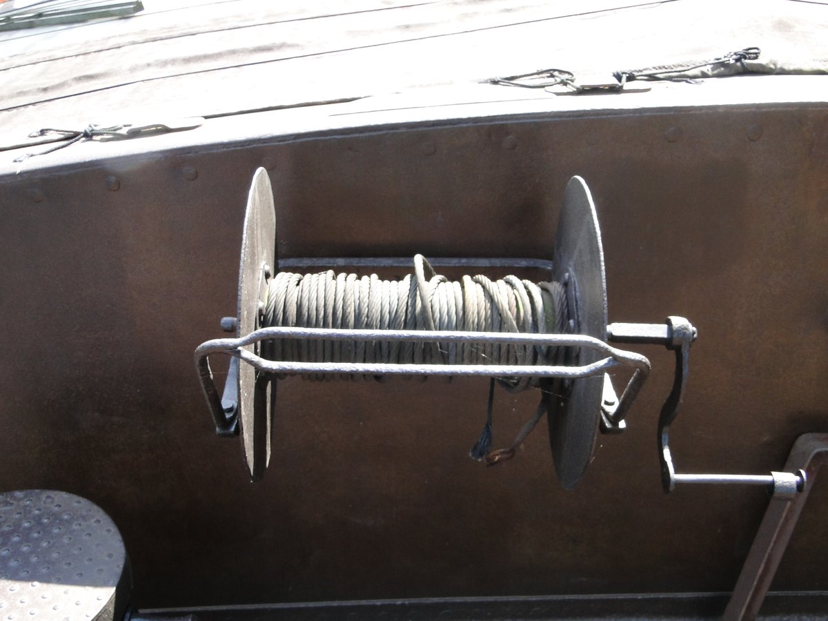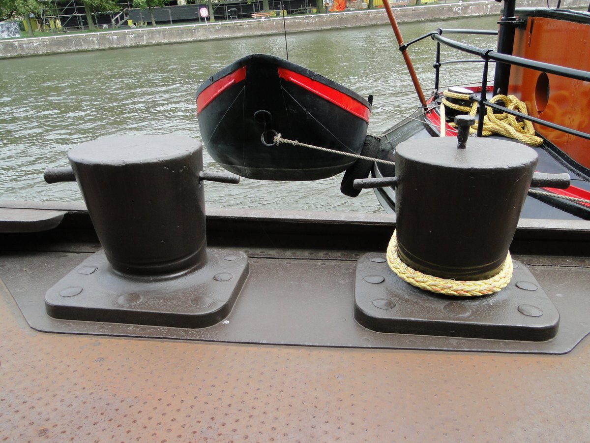 steekt een stevig bolder. Als men de ankerdavit weghaalt, het ankerlier
