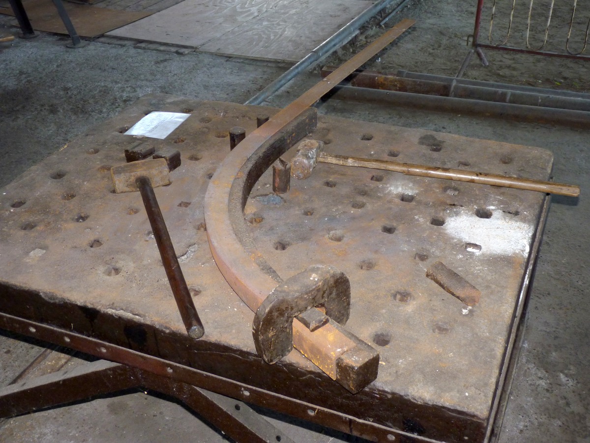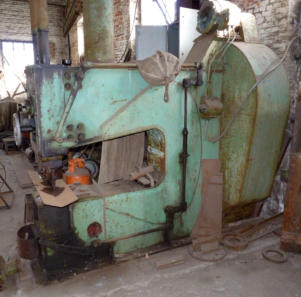 Stoffige en verlaten staat hier een buigbank - zetbank waarmee men platen een vouw of een krappe ronding kon geven.