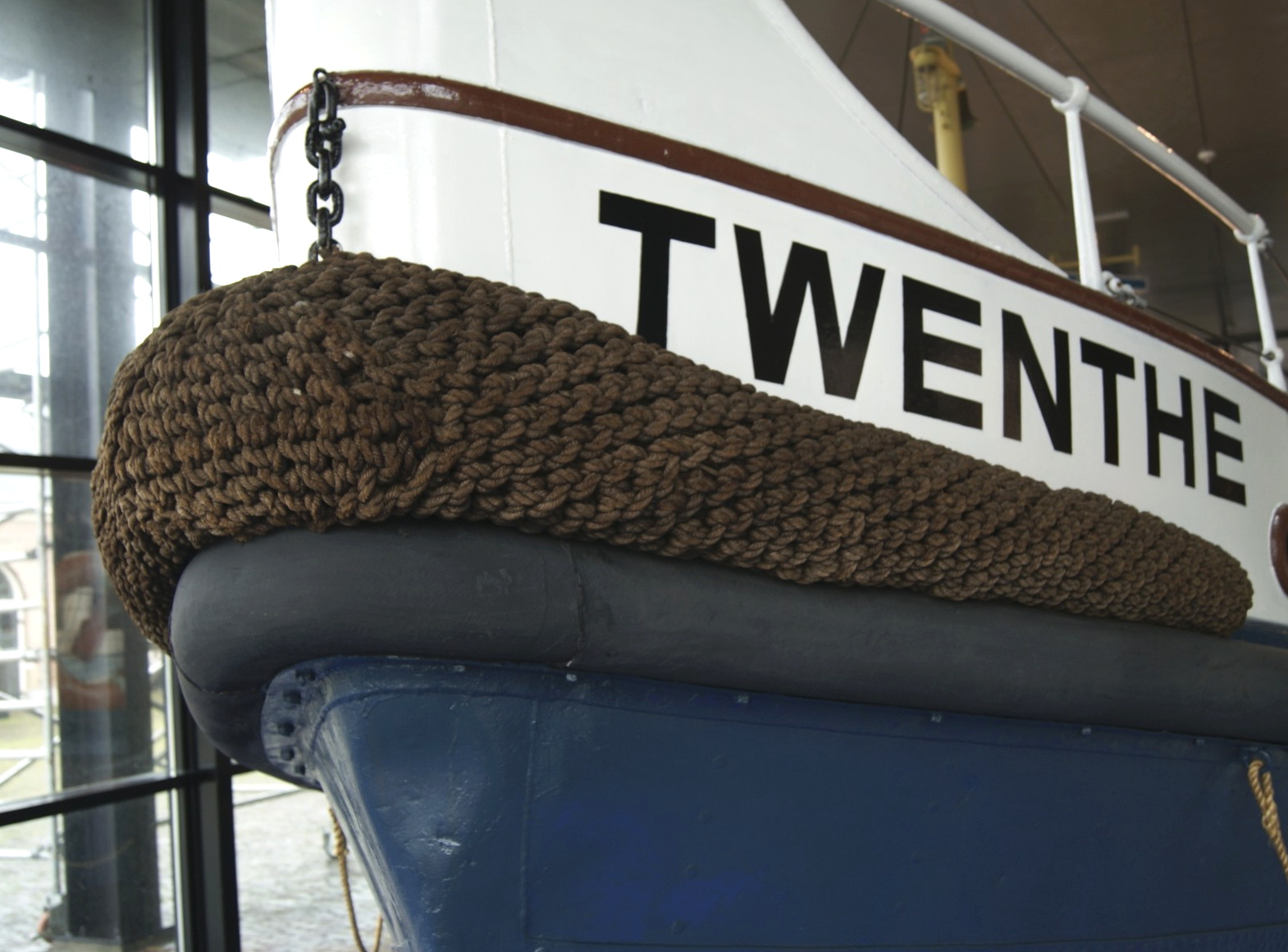 berghout dat rond het gehele vaartuig loopt. Bij A de