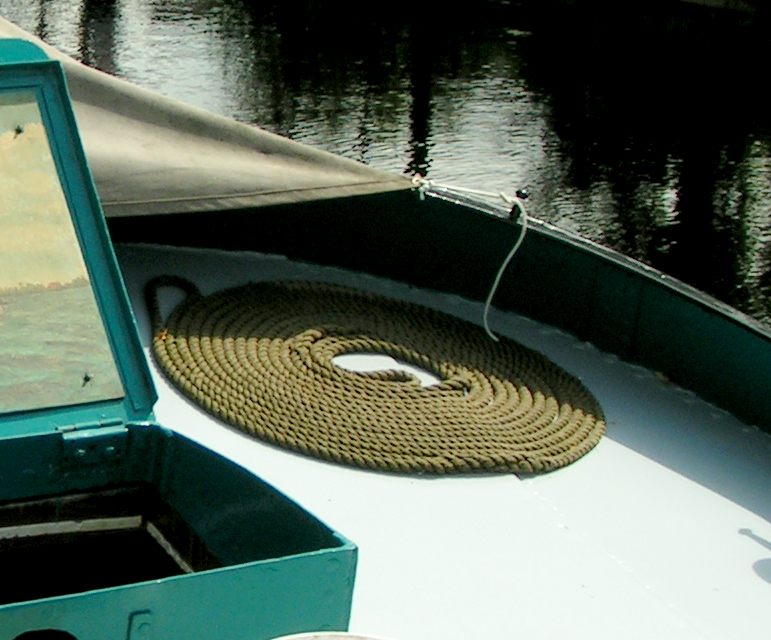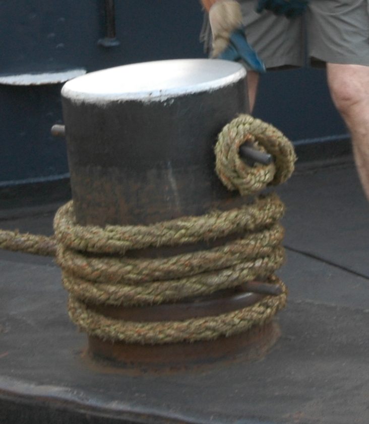 maar het is slecht voor het touw en slecht voor het dek. Een touw op het dek kan men