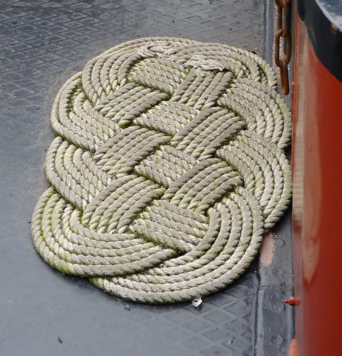 Een gevlochten dekmat.