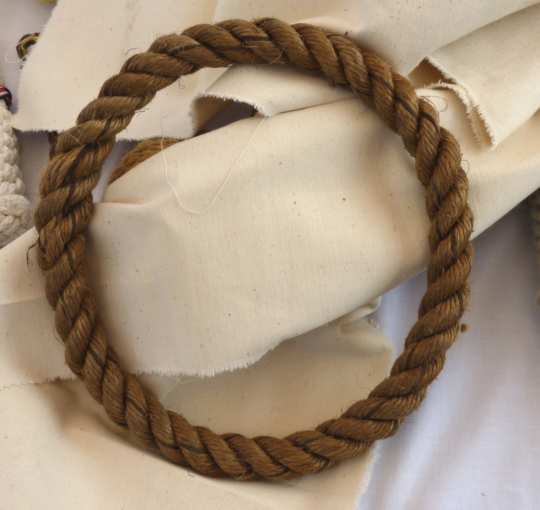 Een touwring of grommer. Deze is gemaakt door een kardeel driemaal om zichzelf heen te slaan en de uitgedunde einden weg te splitsen. Grommers werden ondermeer gebruikt voor de zogenaamde stropblokken.