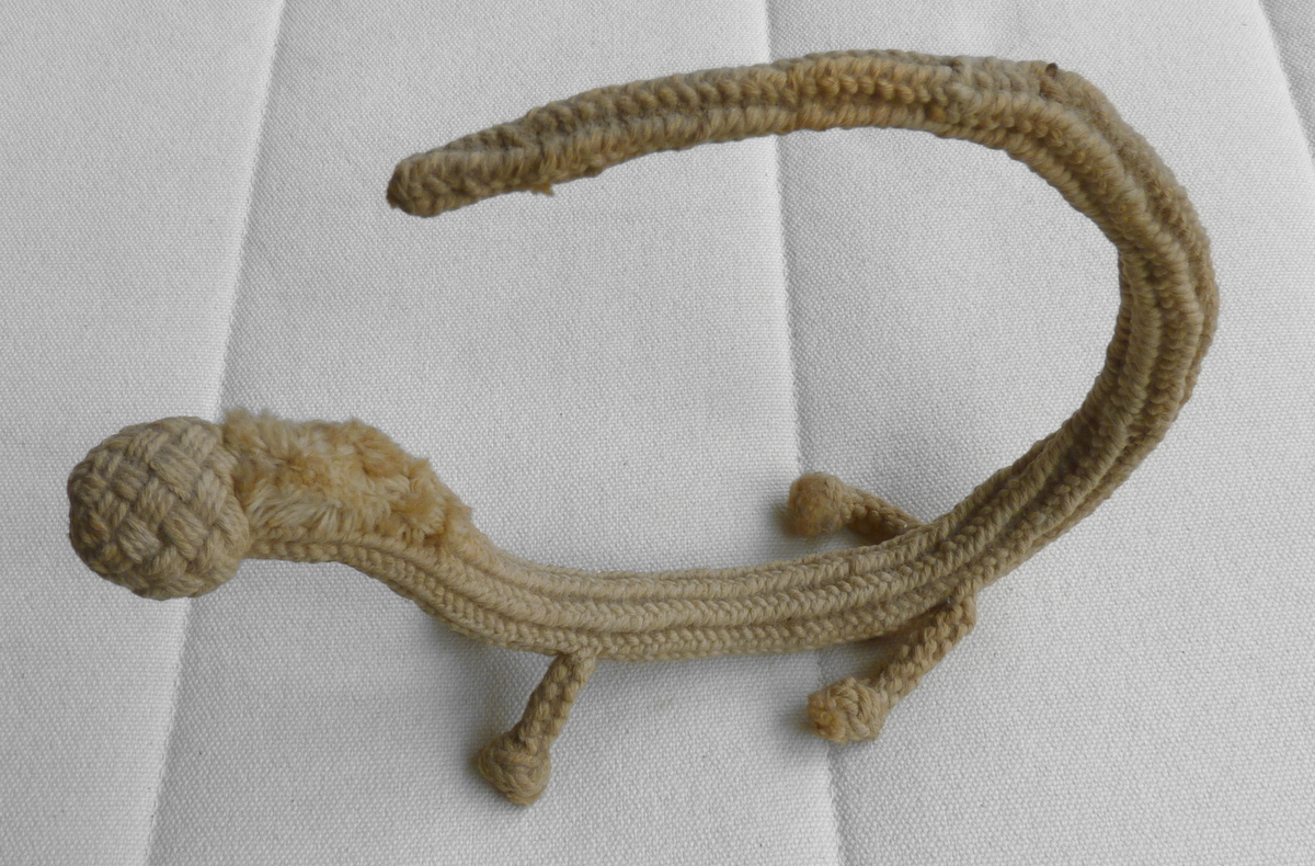 Een touwwil met halve steekkatning gebreeën.