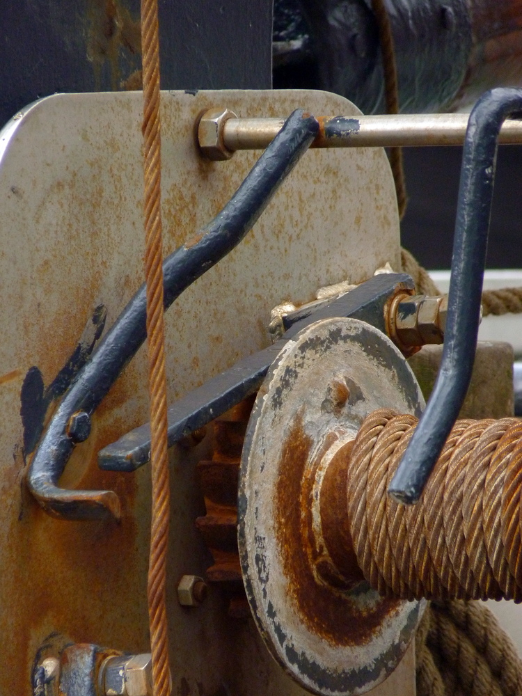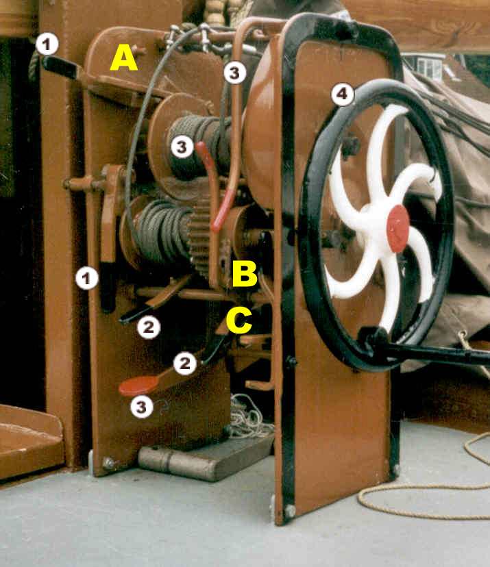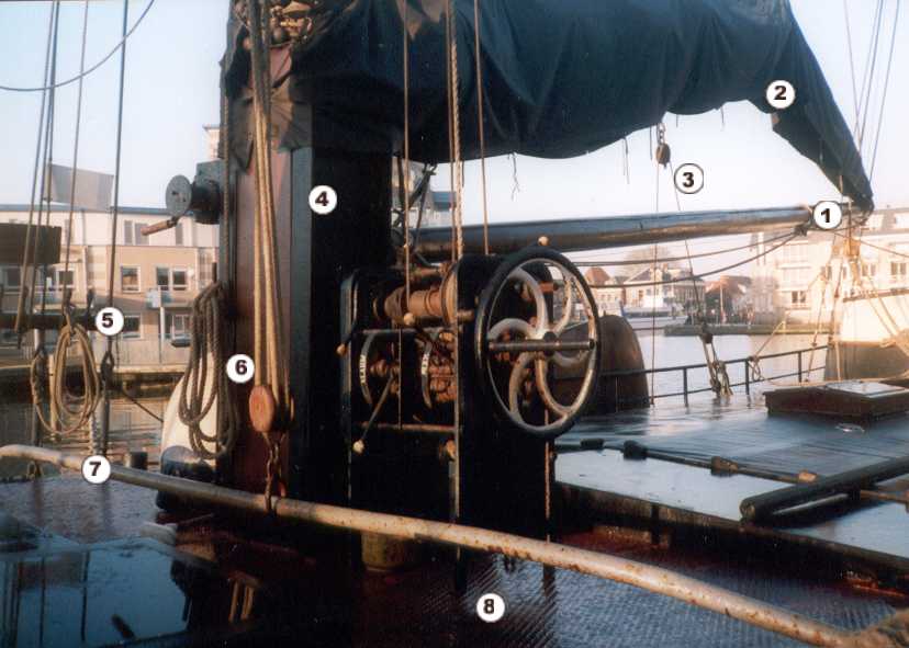 De klipper Lumey, slechts 82 ton groot heeft twee van dergelijke lieren naast de mast. Elk lier heeft vier rollen......