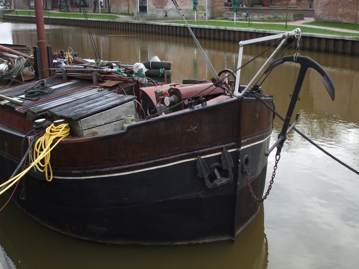 De sleepboot die er naast ligt, is gebouwd bij Ceuvel te Amsterdam.