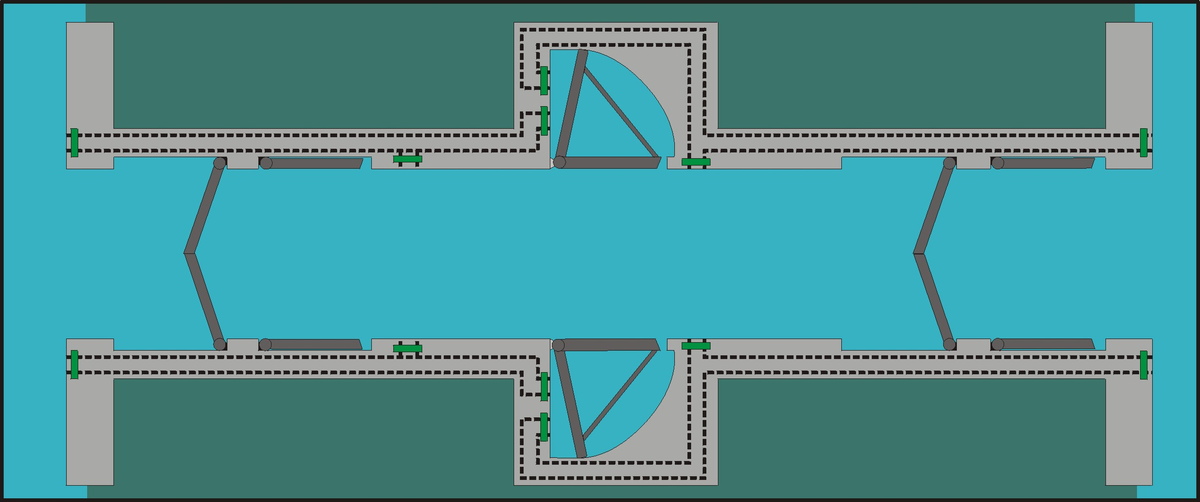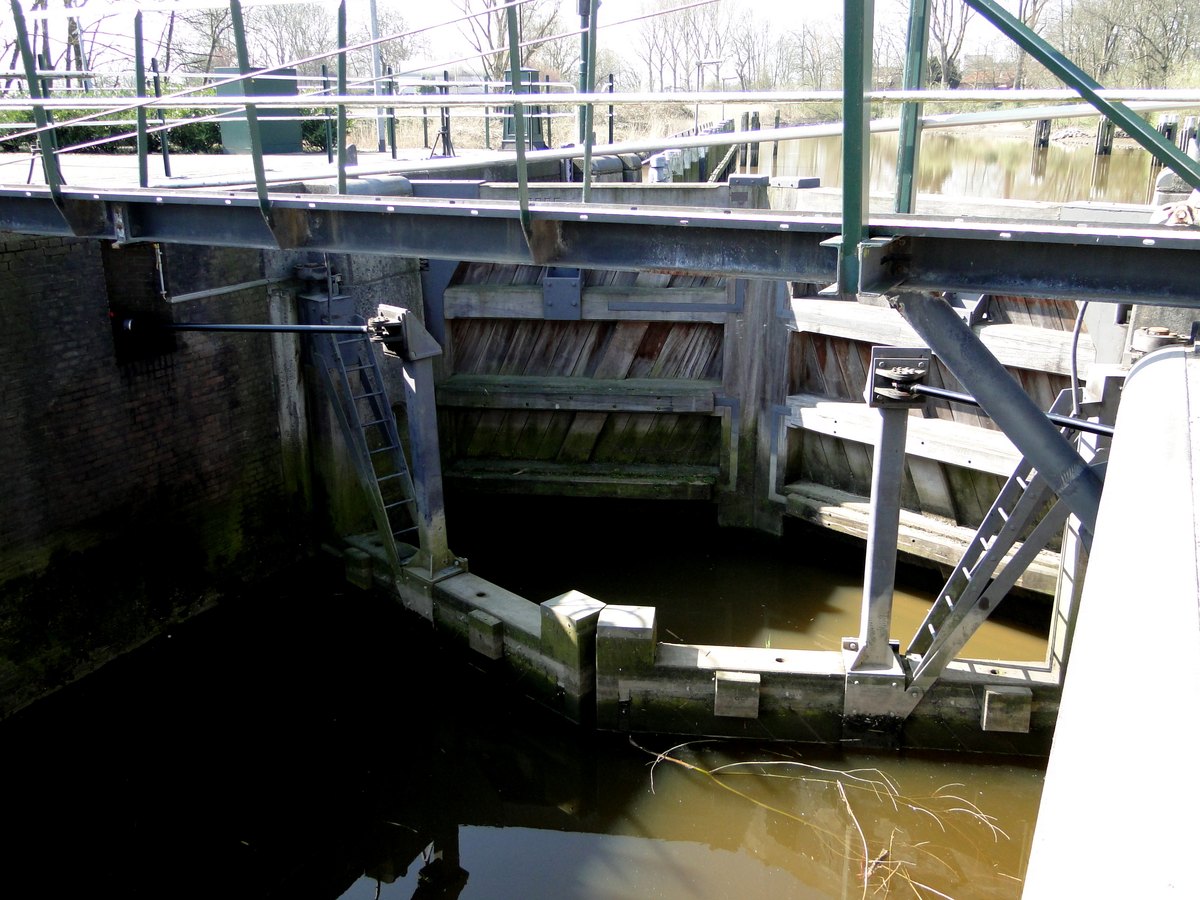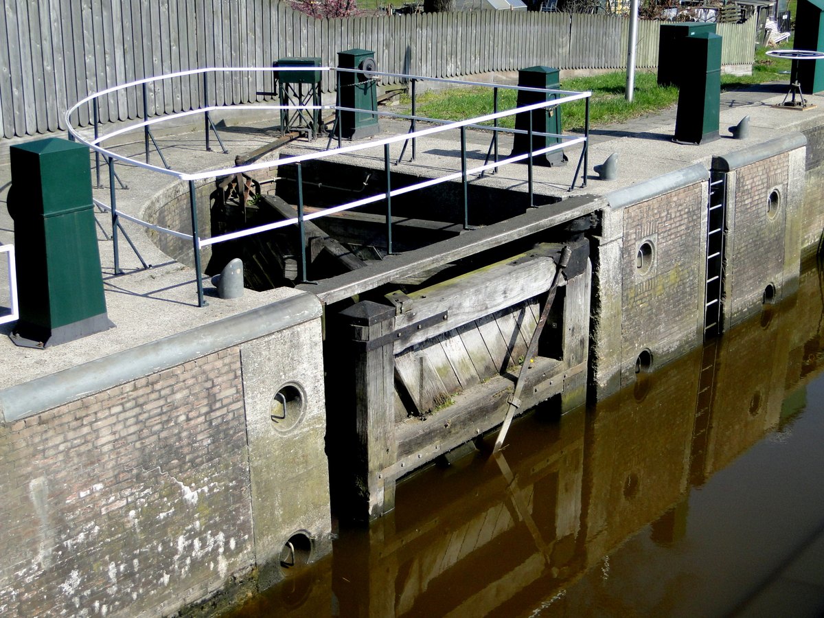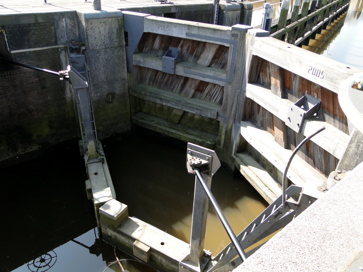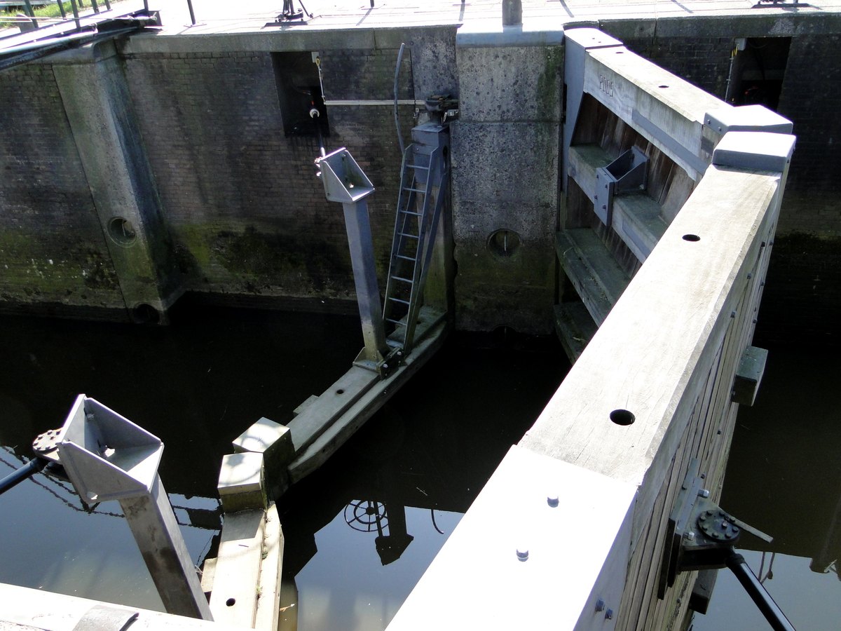 waaiersluis ziet, dan zijn de deuren nauwlijks afwijkend van gewone sluisdeuren. Bij sluizen waarbij de