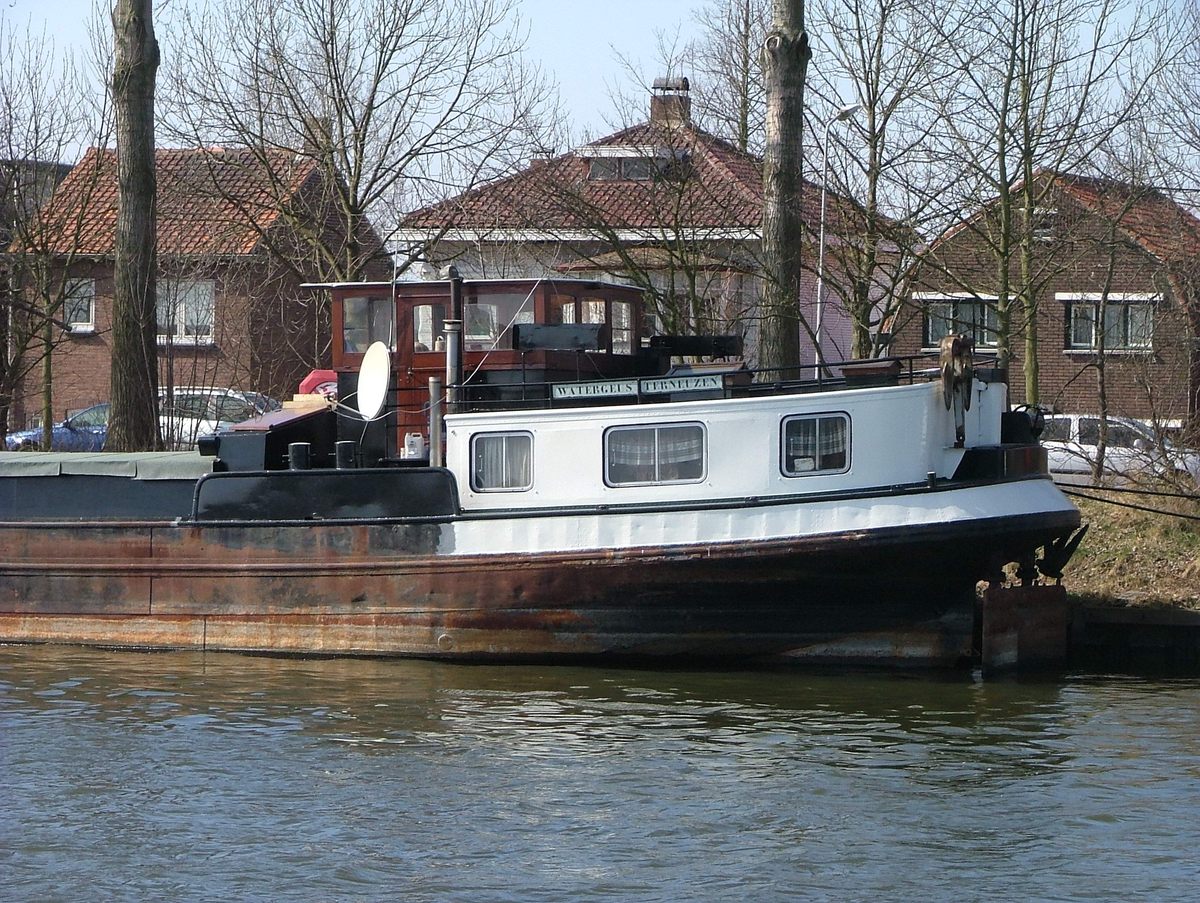 De 'Watergeus' in zwaar verwaarloosde toestand in Sluiskil.