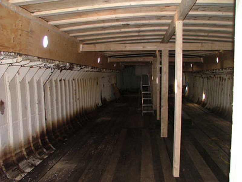 dek verwijderd, net als de schotten in het schip. Verdere plannen,