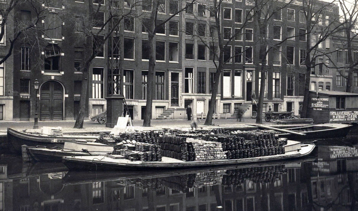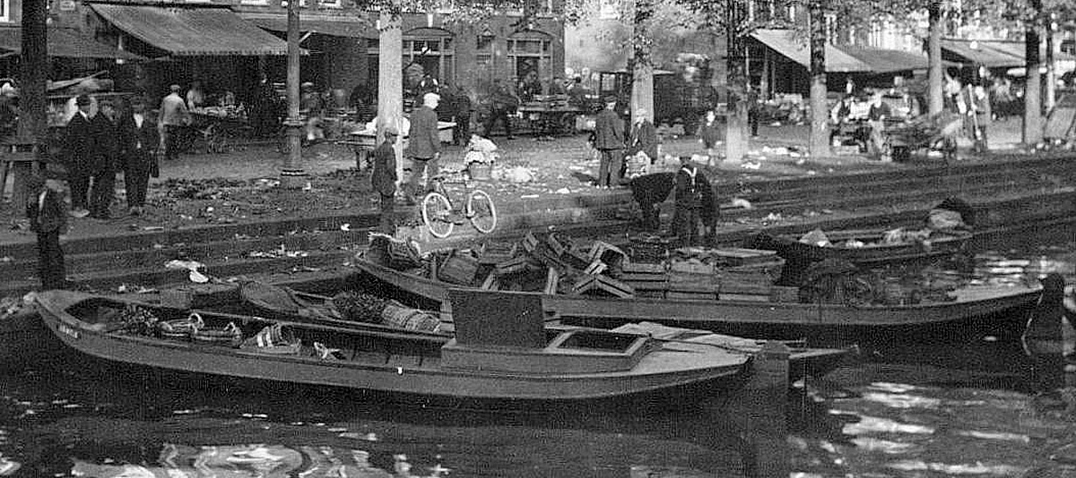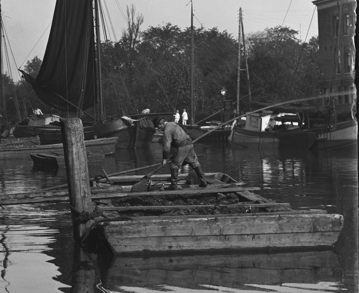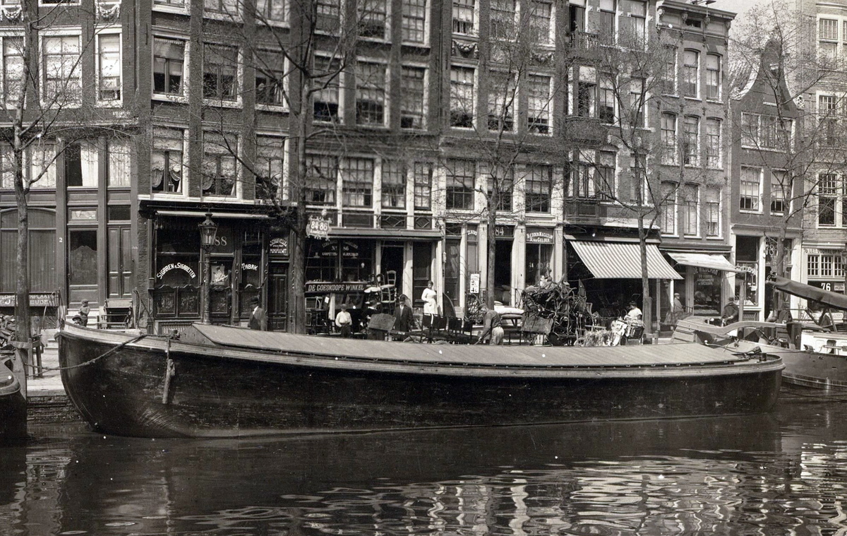Amsterdamse dekschuit bij de werf van Oldenhage te Lisse.