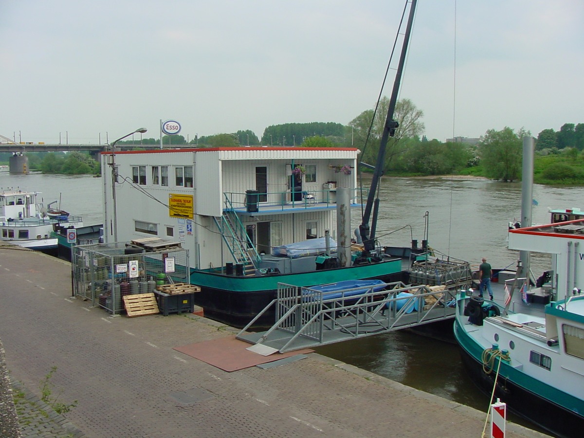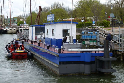 De leurboot Hooimark 1, ex Fina 26, eni 03011492,met op de achtergrond het bunkerstation. De leurboot werd rond 2015 verkocht, vaart nu vanuit Zaandam en ging Amy heten.