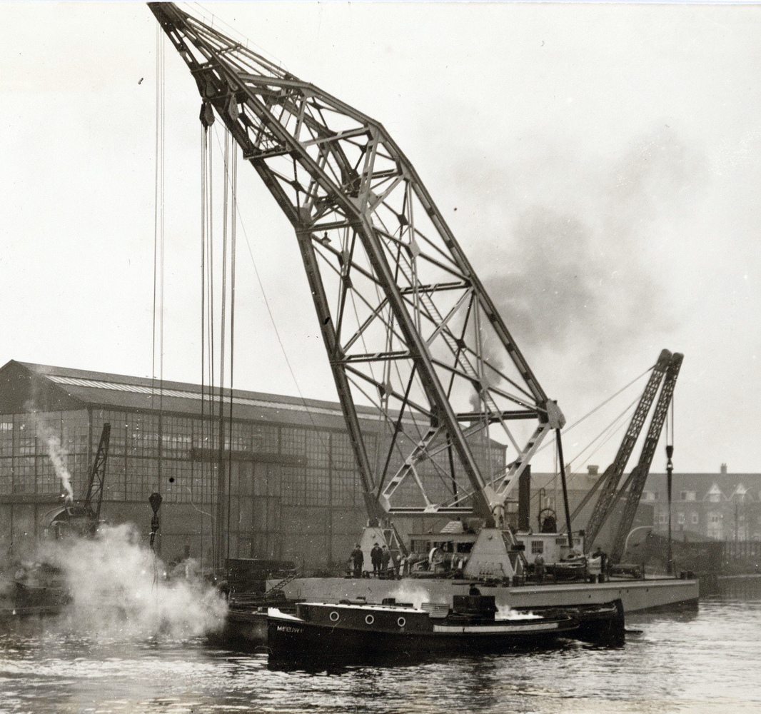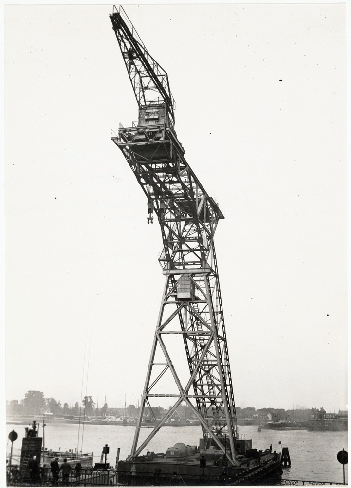 Drijfkraan bij de werf van Verschure aan het motorkanaal Amsterdam N.