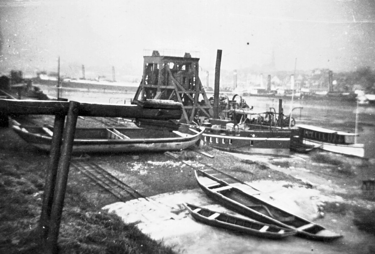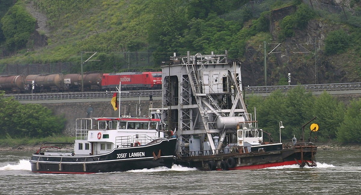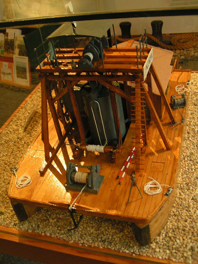 De 'Kaiman' te Koblenz. Bij dit type duikerklokschip blijft het bovenste deel van de klok boven het
