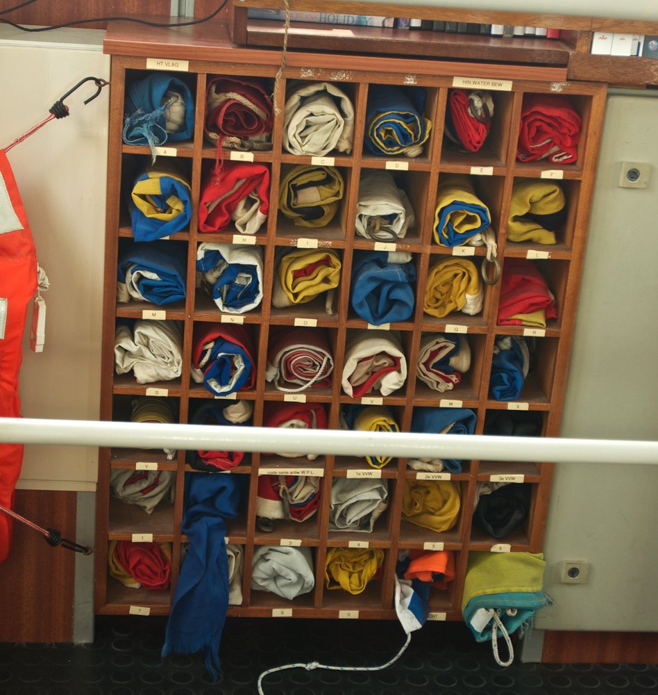 De kast met seinvlaggen.