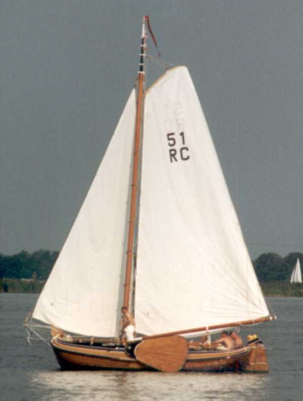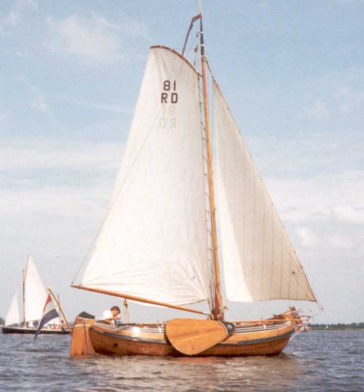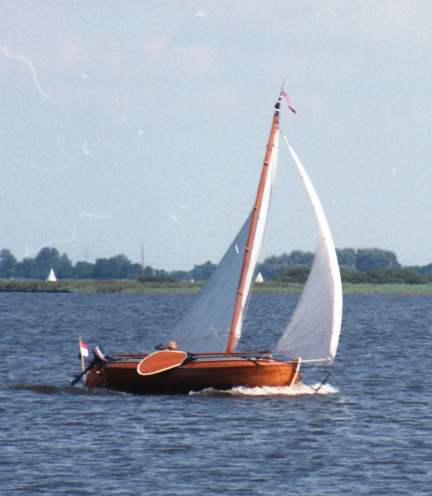 Een klein Fries Jachtje. 6,12 x 2,54m, masthoogte: 11,8m. zeilopp: 25,45 m².