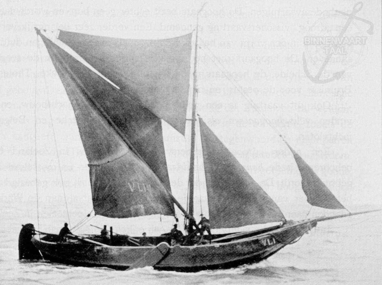 De veel gekopiëerde en gebruikte foto uit "Schepen die Voorbij Gaan" van H.C.A. van Kampen en H. Kersken, uitgave ANWB, Amsterdam 1927. Het toont ons een schip met een zogenaamde