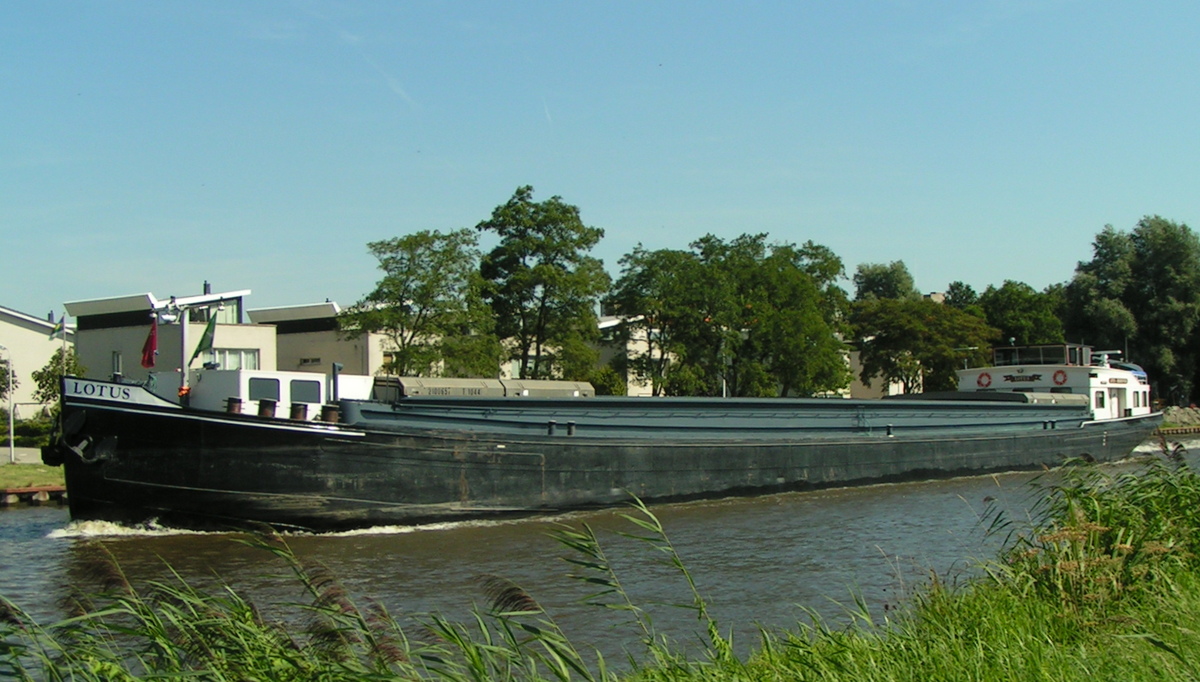 schip, mvs Lotus, een wat vlotter uiterlijk. De uit 1924 stammende Lotus mat 70,2 x 9,3 x 2,4 meter en laadde 1052 ton. Het schip werd in 2015 gesloopt. [