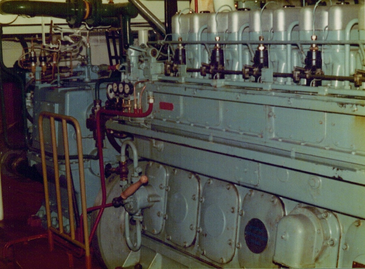 De hoofdmotor naar achter toe gezien. De 'Almere' had in verband met haar