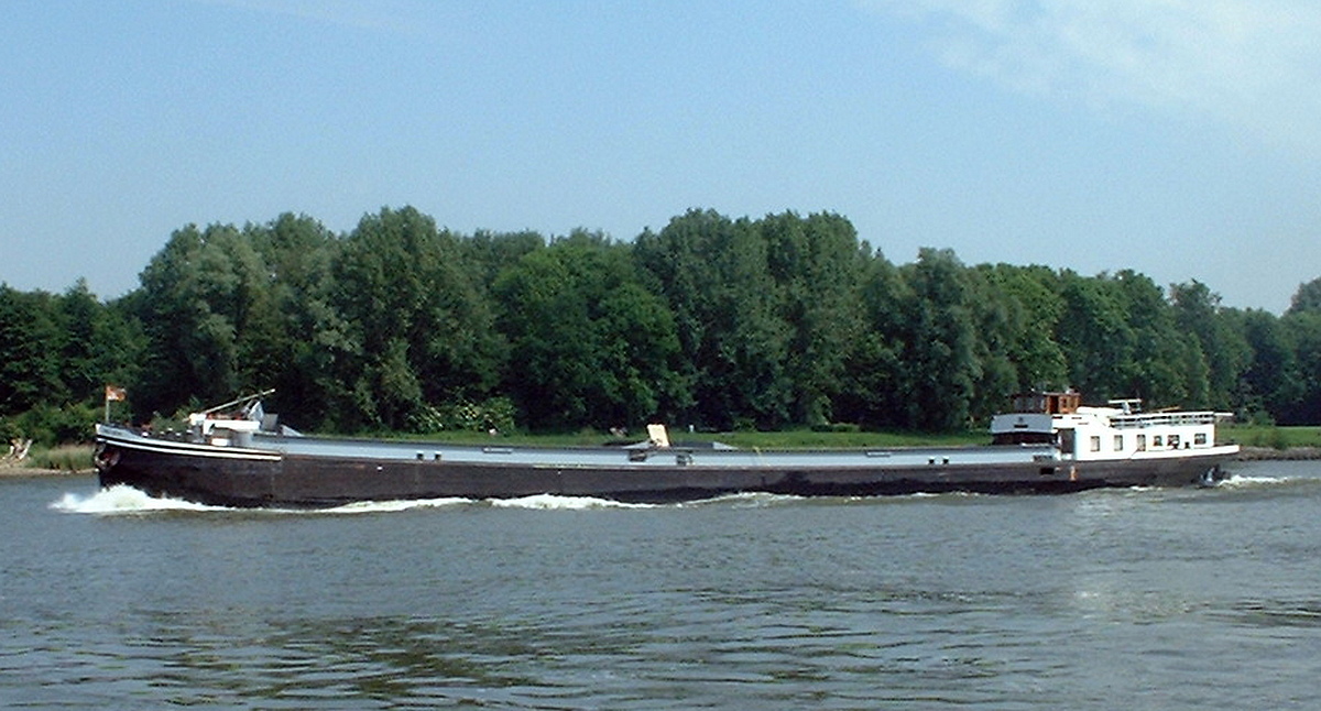 De 'Eben Haezer' in mei 2003. Het schip meet 70 x 8,65 x 2,5 meter, is 874 ton groot en werd