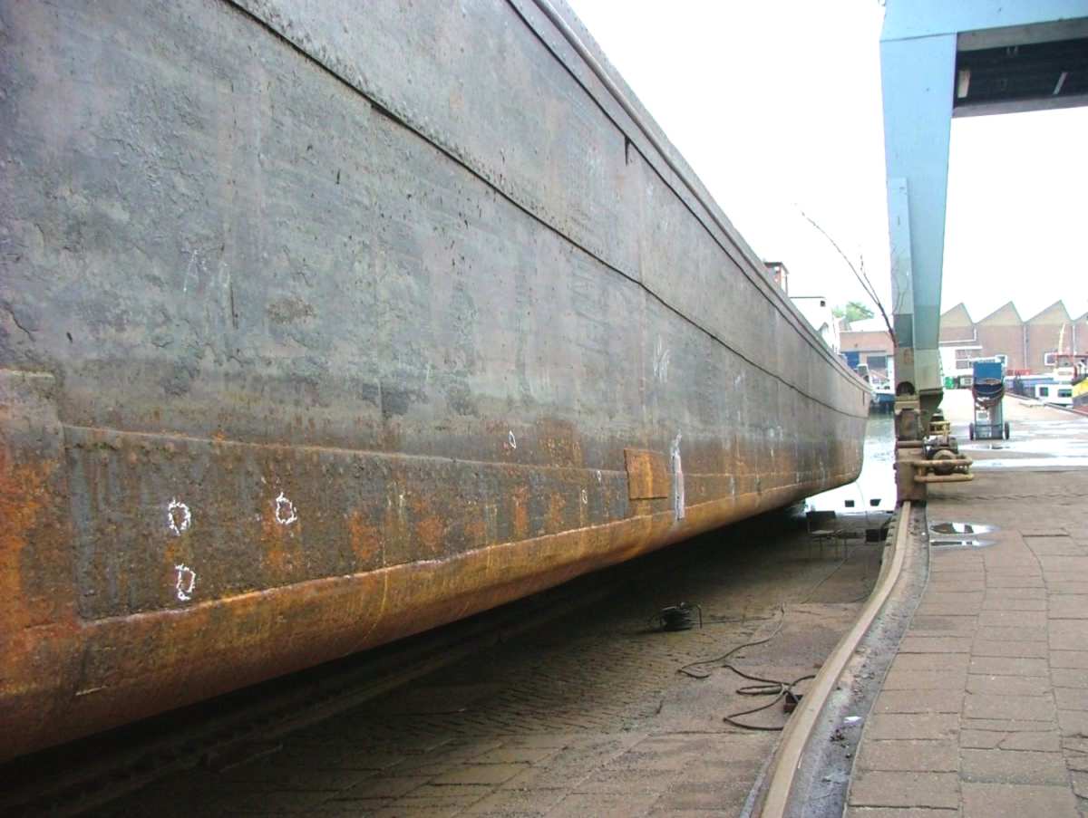 Bij laagwater kan men echter wel, voor een goed deel, onder het achterschip werken. (