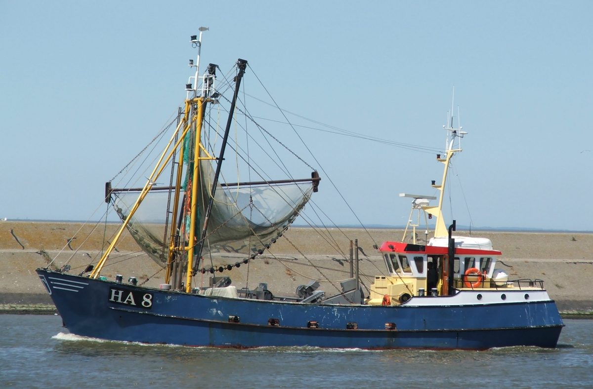 garnalenkotter, hekkotter, TS 1, werd in 1988 bij scheepswerf Harlingen