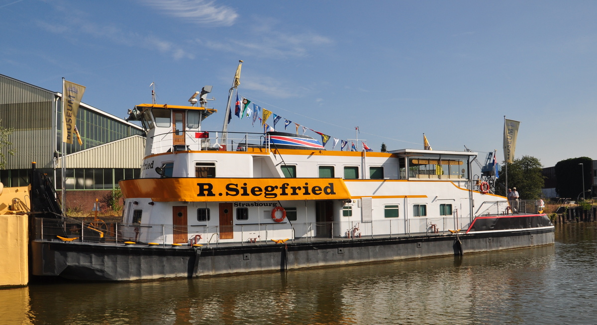 Het hoofdkwartier van de vereniging De Binnenvaart met daarin ondermeer het Binnenvaartmuseum en het documentatiecentrum. De Rene Siegfried werd in 1963 op enige tientallen meters van waar ze nu ligt, namelijk bij scheepswerf De Biesbosch gebouwd. Het schip meet 32 x 11,3 x 1,46 meter.
