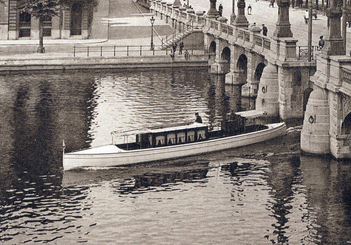 gedekte motorboot. Het scheepje is eigenlijk geheel open, want slechts de voorramen en het dak zijn vaste onderdelen. De rest wordt met behulp van tentzeilen naar believen gesloten. O ja, er is een soort van houten kast te zien. Deze lijkt me echter niet origineel. In en tegen deze 'kast' zijn onder meer de bar en het toilet ondergebracht. Volgens websites is het scheepje in 1909 bij R. Holtz, Schlosswerft te Hamburg tewatergelaten. In 2002 is het naar zijn huidige staat gerestaureerd.
