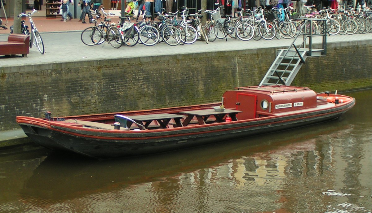 rondvaartboot in Leeuwarden. Eerst was het vaartuig voorzien van een 2 cil.