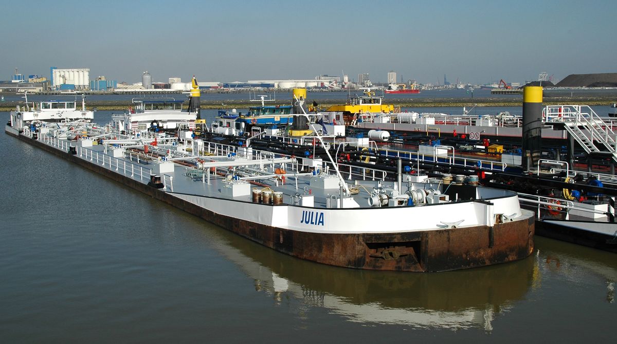 tankschepen met op de voorgrond de 'Julia'. Die laatste werd in 1977 bij de Arminiuswerft te Bodenwerder (D) gebouwd. Het valt op door het ronde