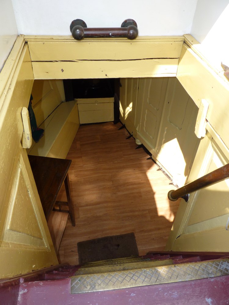 door de vloer omhoog. Een zeer gebruikelijke constructie bij schepen uit die tijd.