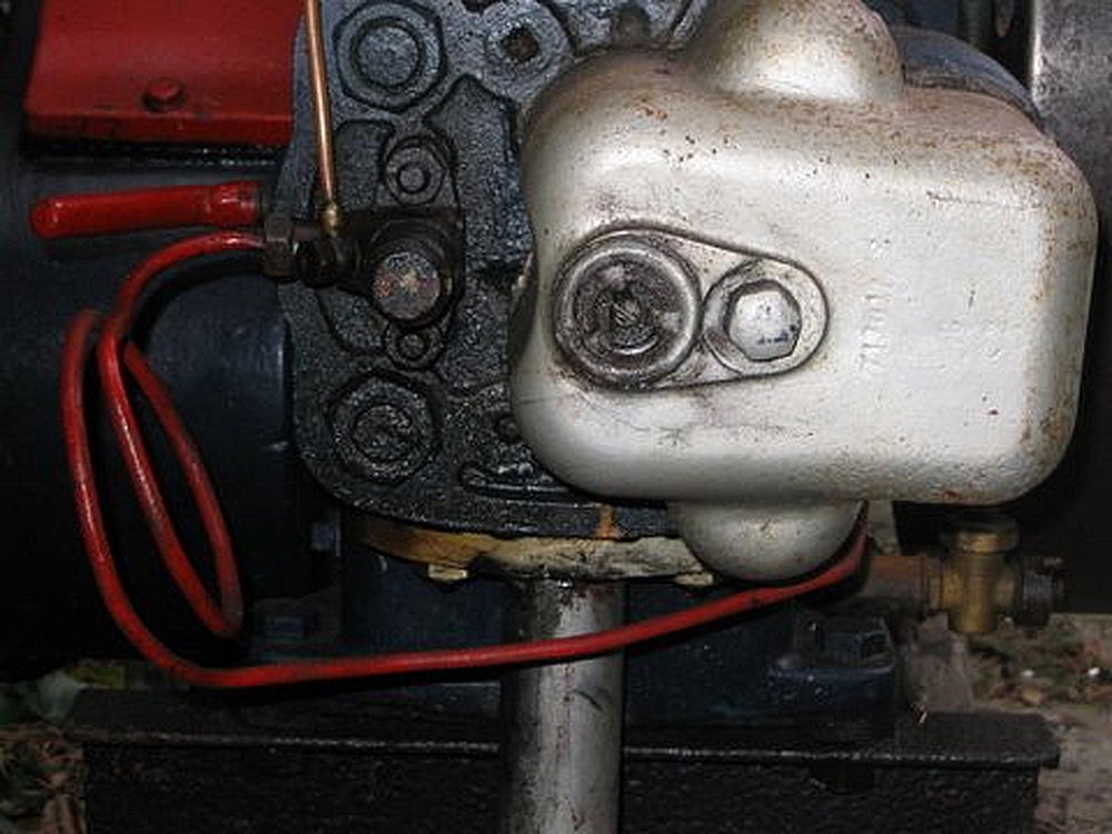 Zicht op het kleppendeksel links van debevestigingsbout lijkt een soort ventiel? of iets dergelijks te zitten.