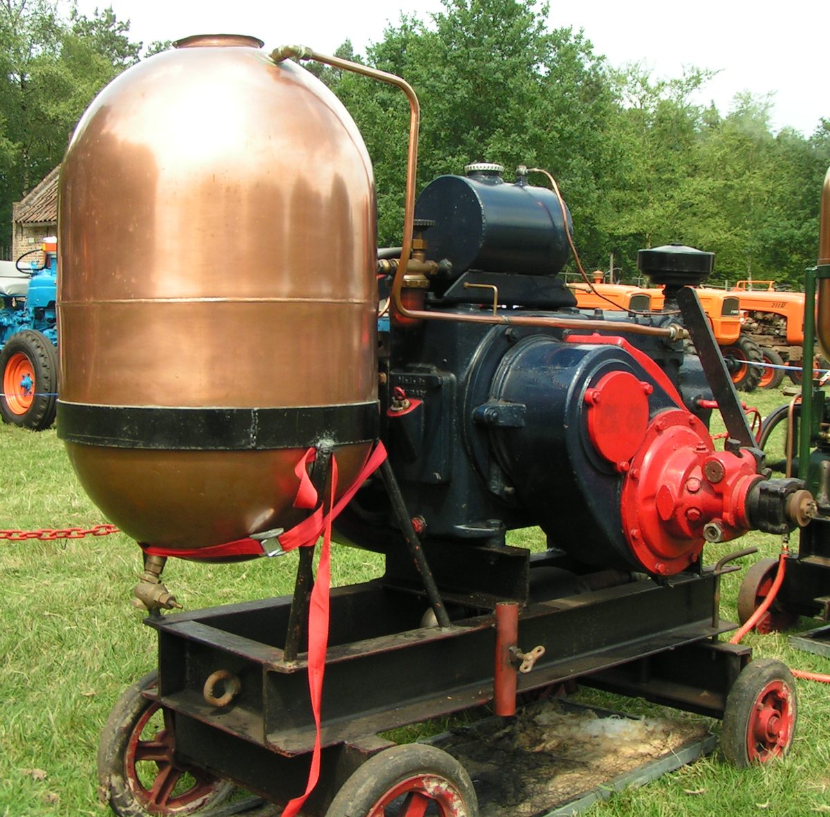 een groot voorraadvat en verdamping voor de benodigde koeling moet zorgen. Deze opstelling werd natuurlijk niet op schepen gebruikt, maar op plaatsen waar geen of slechts weinig industrie- of buitenwater voorhanden is. Bijvoorbeeld in werkplaatsen en bij dorsmachines e.d.