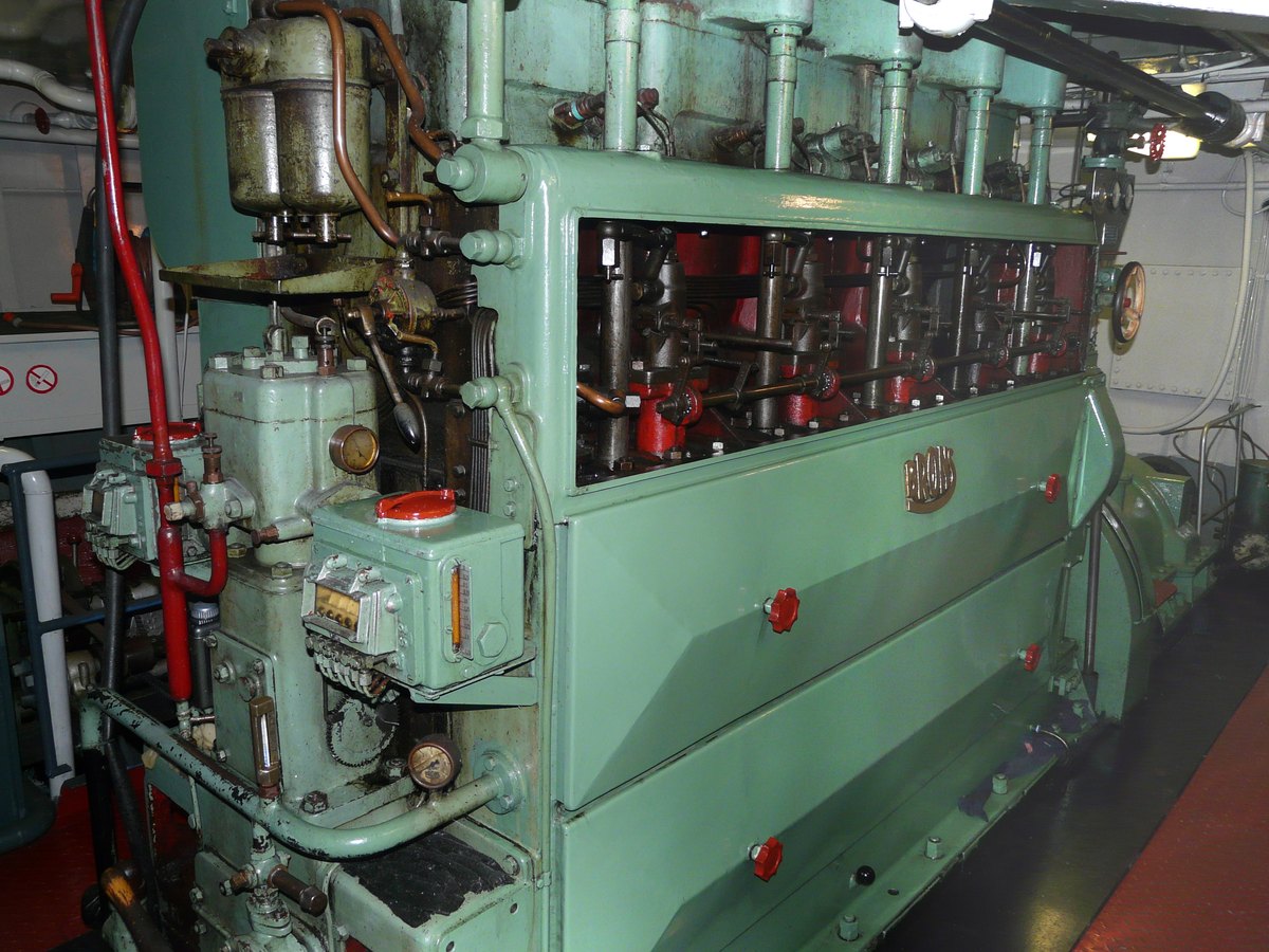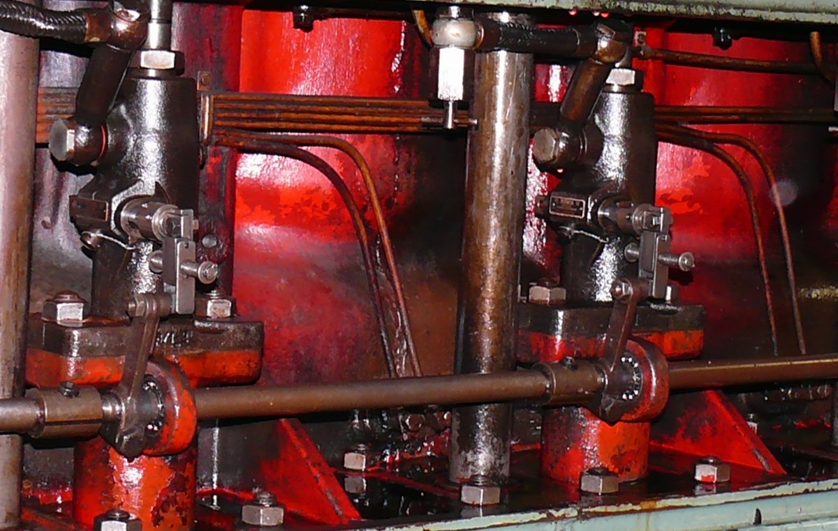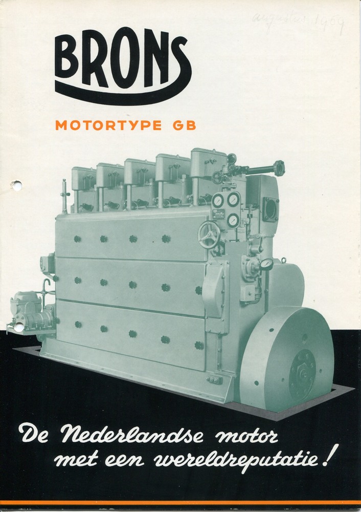 Een één-cilinder motor naar ontwerp van Brons vervaardigd